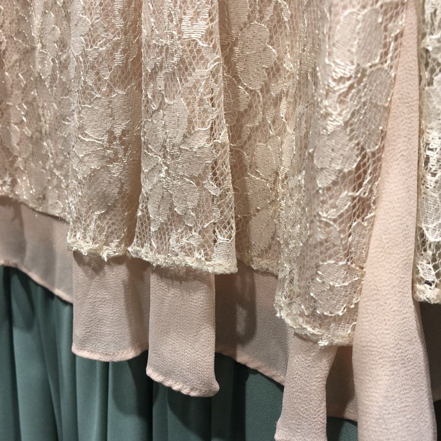 レース重ね着風 袖 2Way ドレス(Mサイズ/グリーン/Jines(ジネス))USED