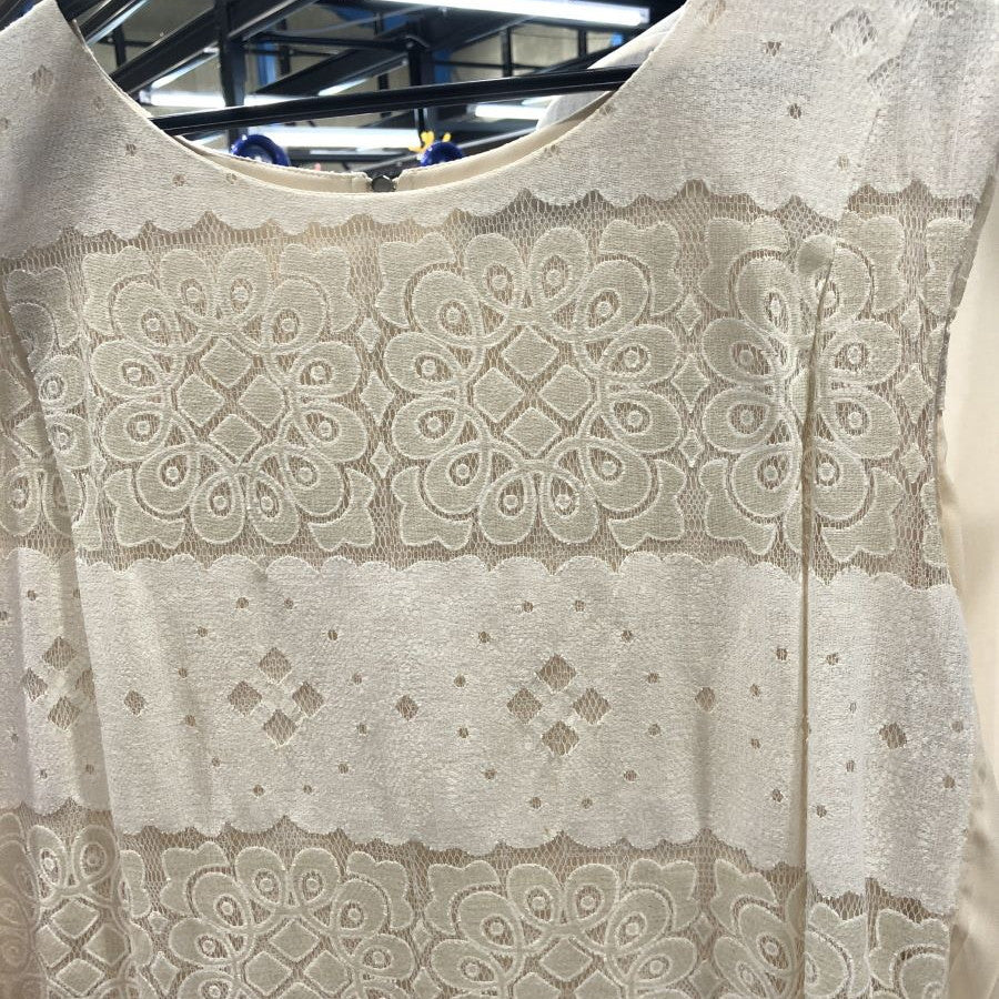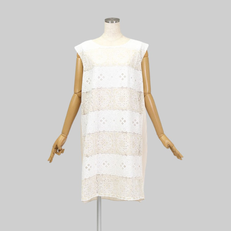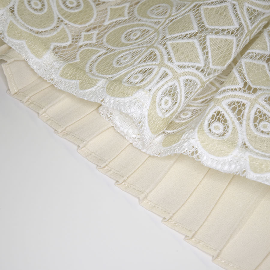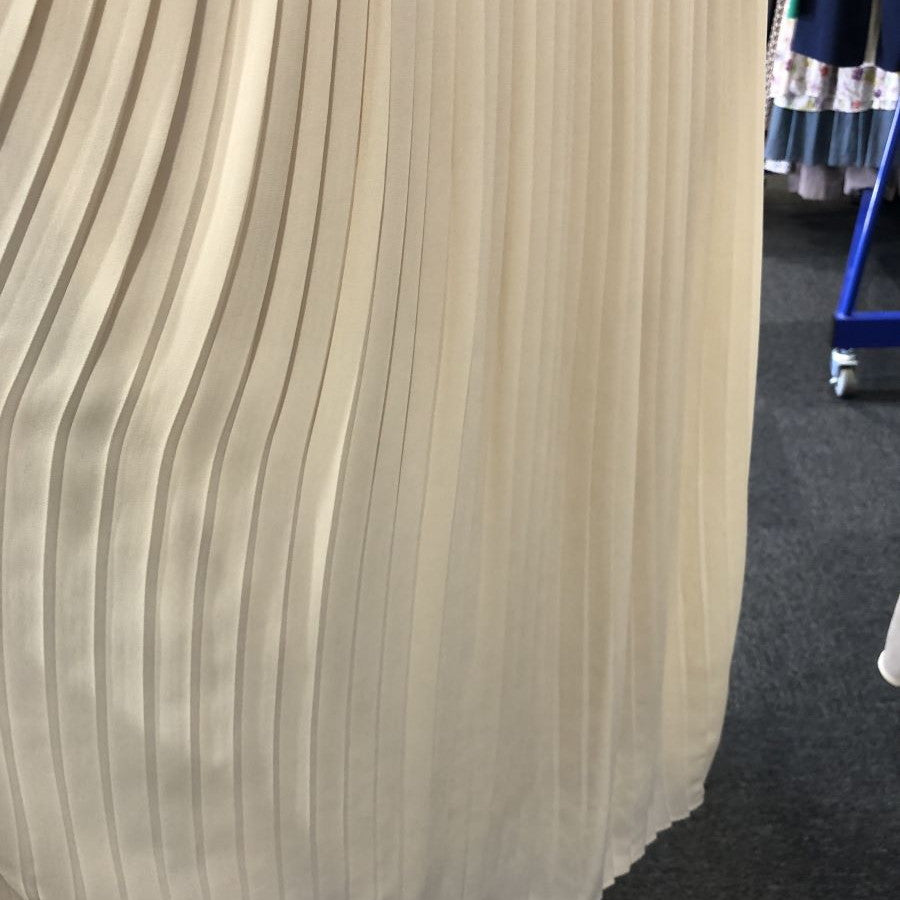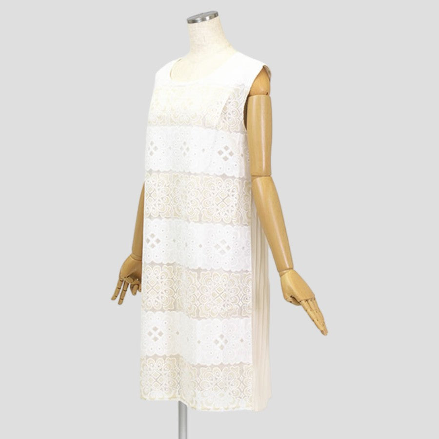 フロントのレースとバックのプリーツが大人可愛い1着。