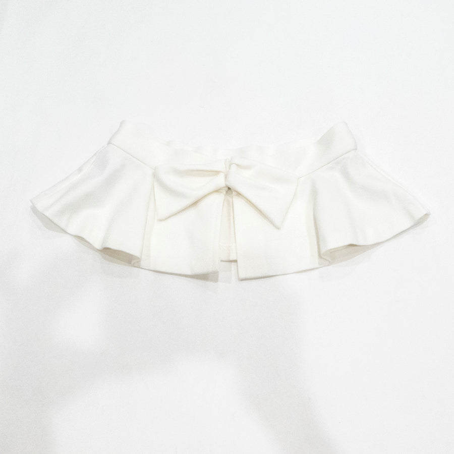 ぺプラム部分は、前後どちらでもお好みやシーンに合わせてお使いいただけます。また、ペプラム部分を外し、カーディガンやジャケットなどと合わせて上品に着こなしていただいても◎