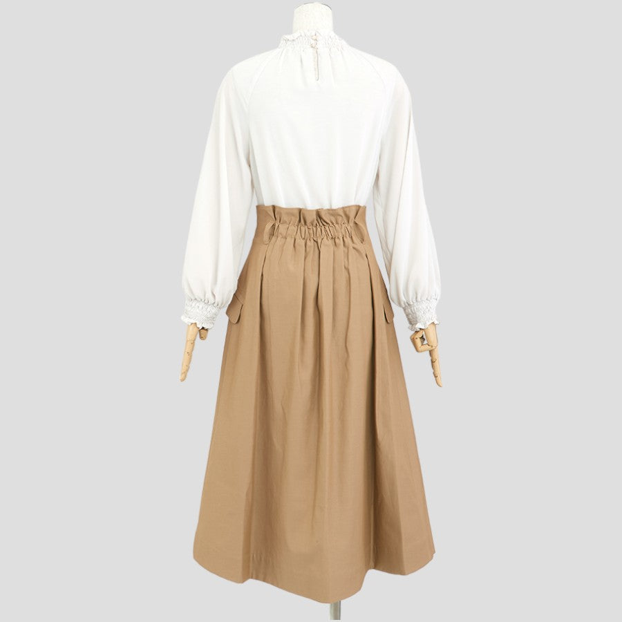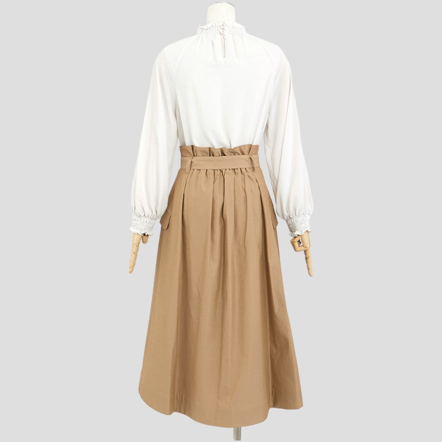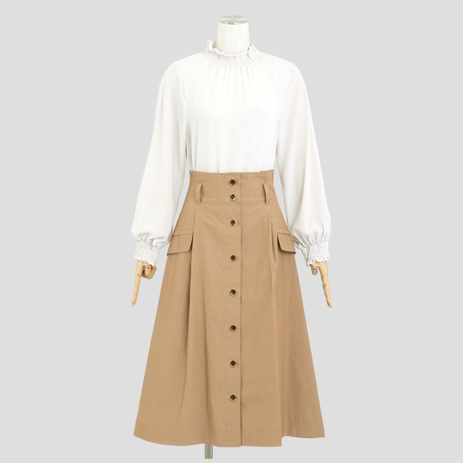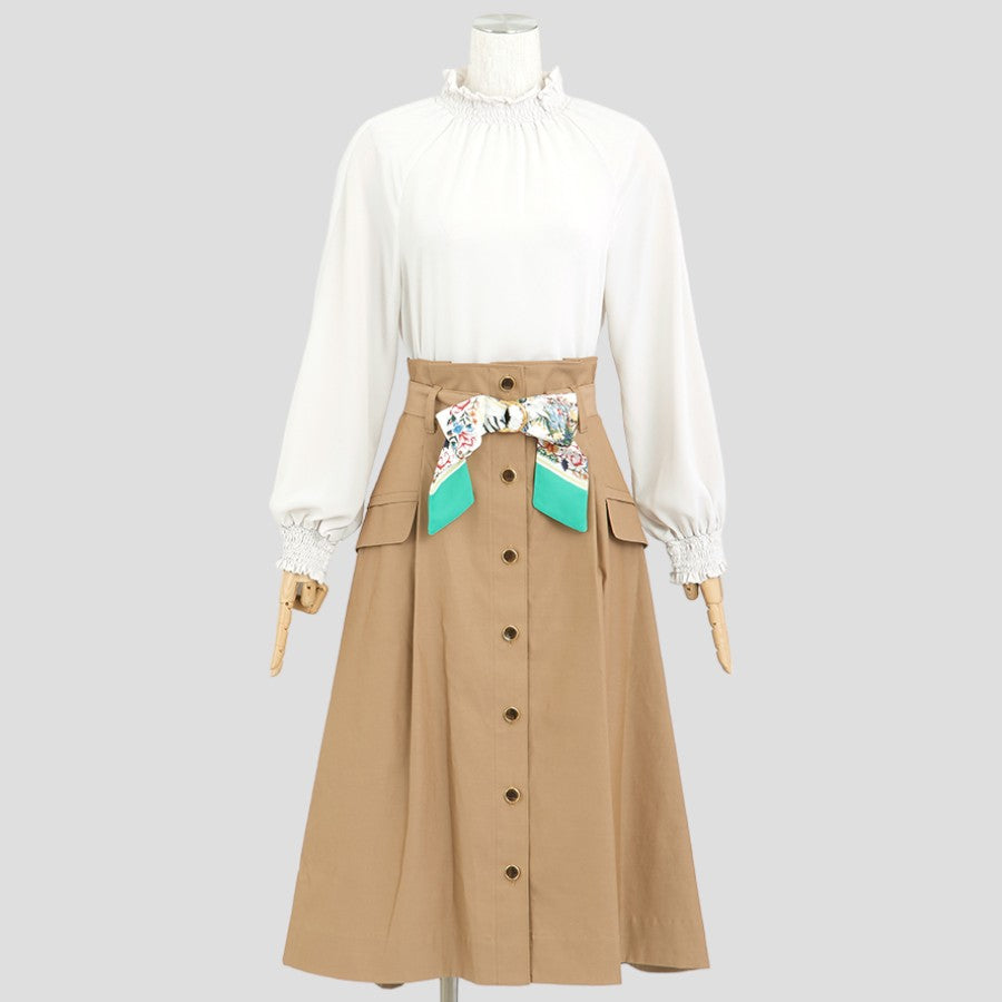 クラシカルな雰囲気のシフォンブラウスとスカートのセット。