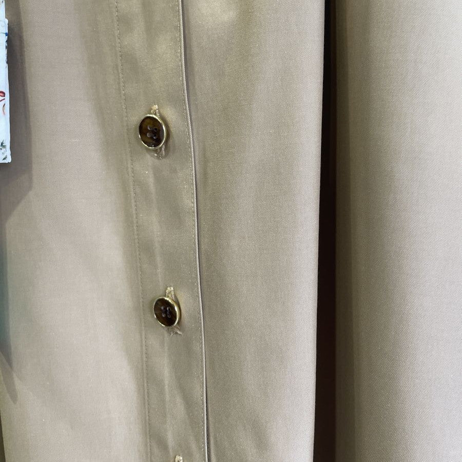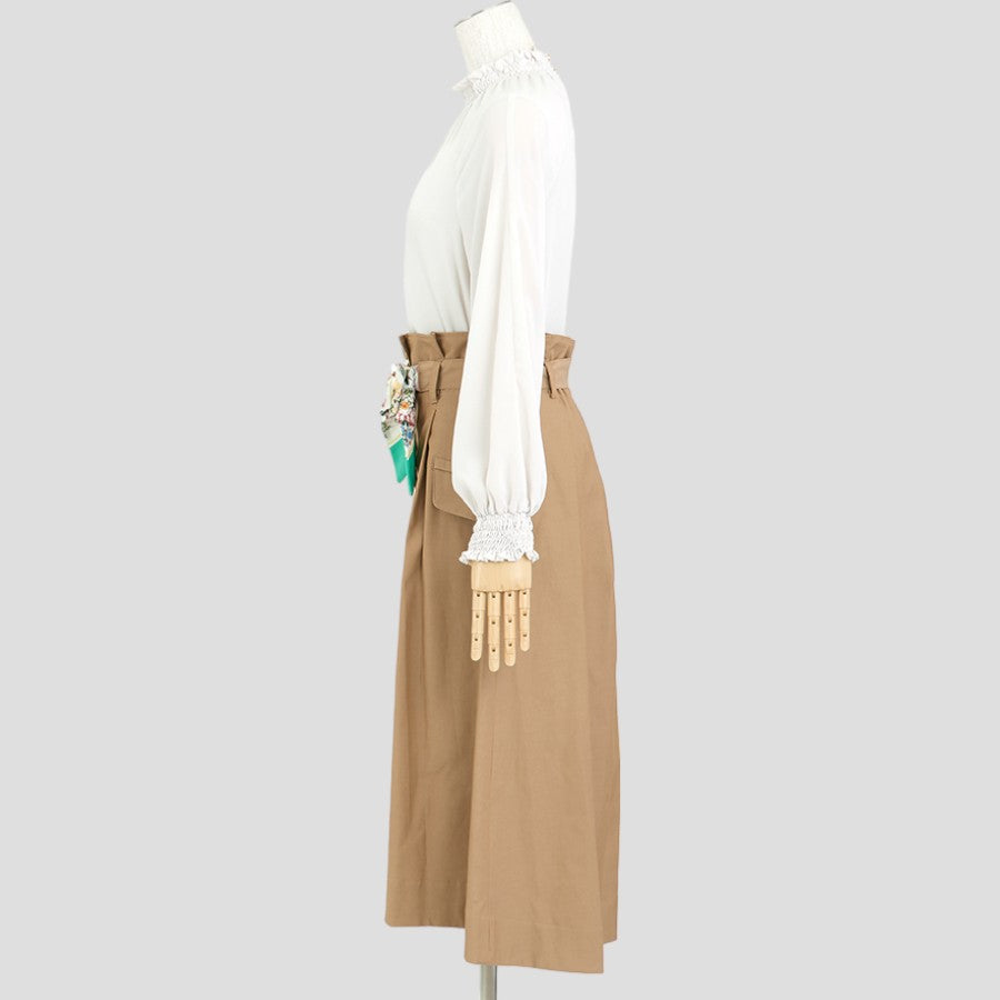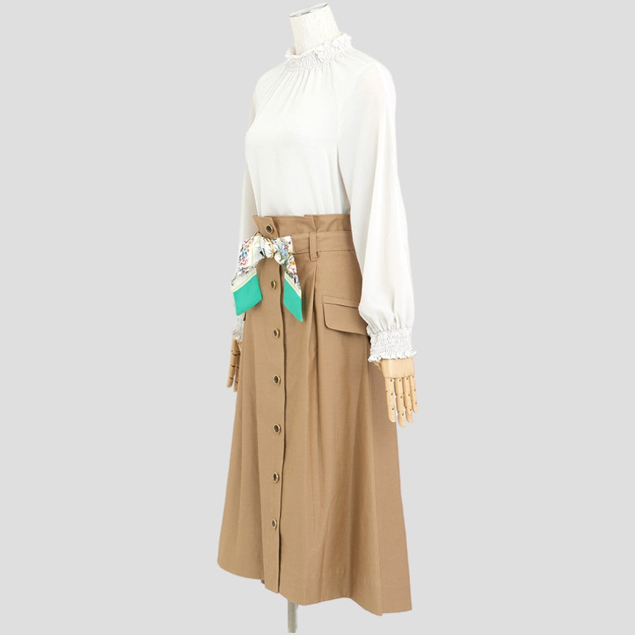 ミディ丈のスカートはトレンチのようなハリのある素材。