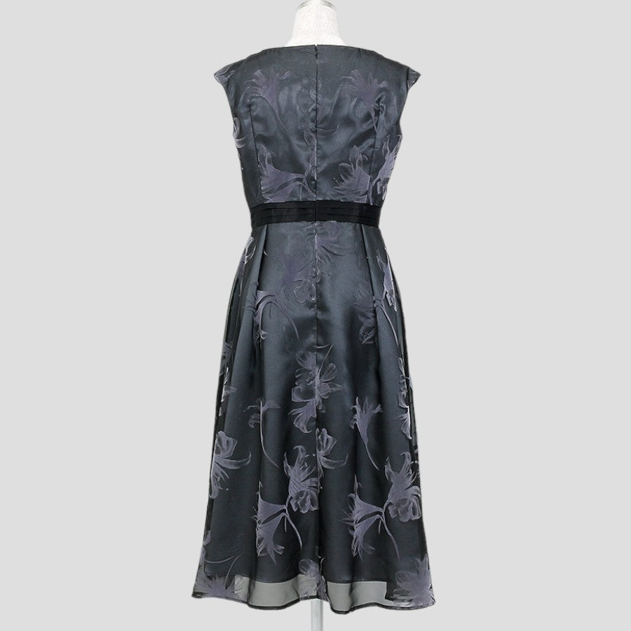 花柄のフロッキープリントが施された、ふんわりとした光沢ある素材。