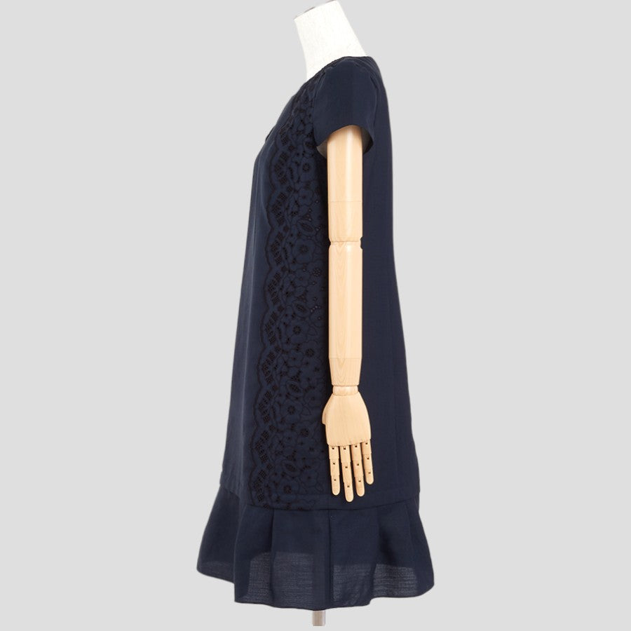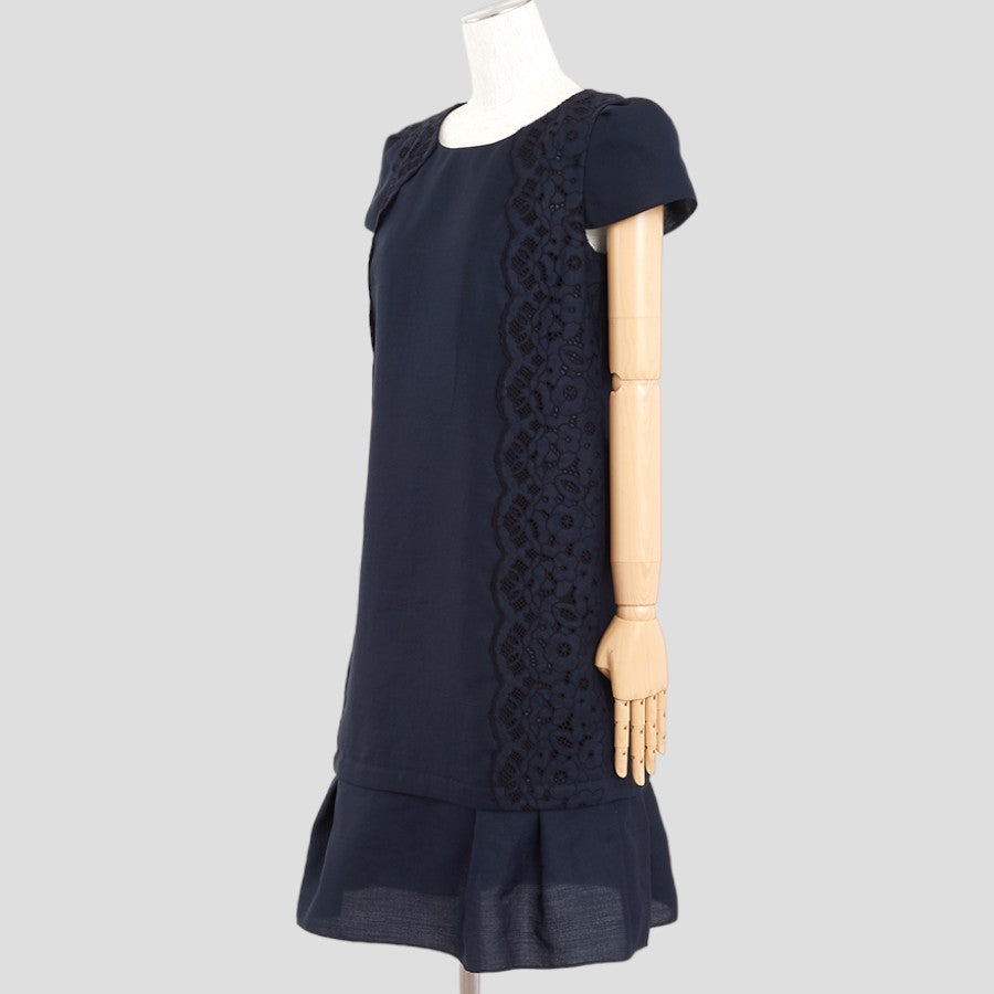 シックな色合いと両サイドのスカラレースで大人可愛いワンピースです。