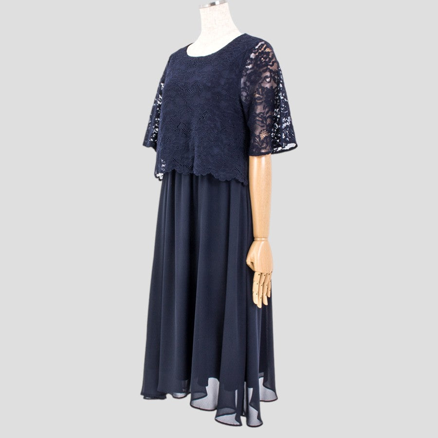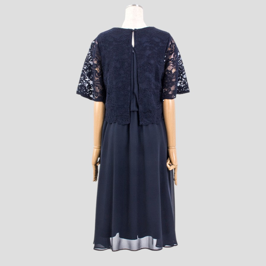 レース使いシフォンワンピースドレス(Mサイズ/ネイビー/Sweet As(スウィートアズ))USED