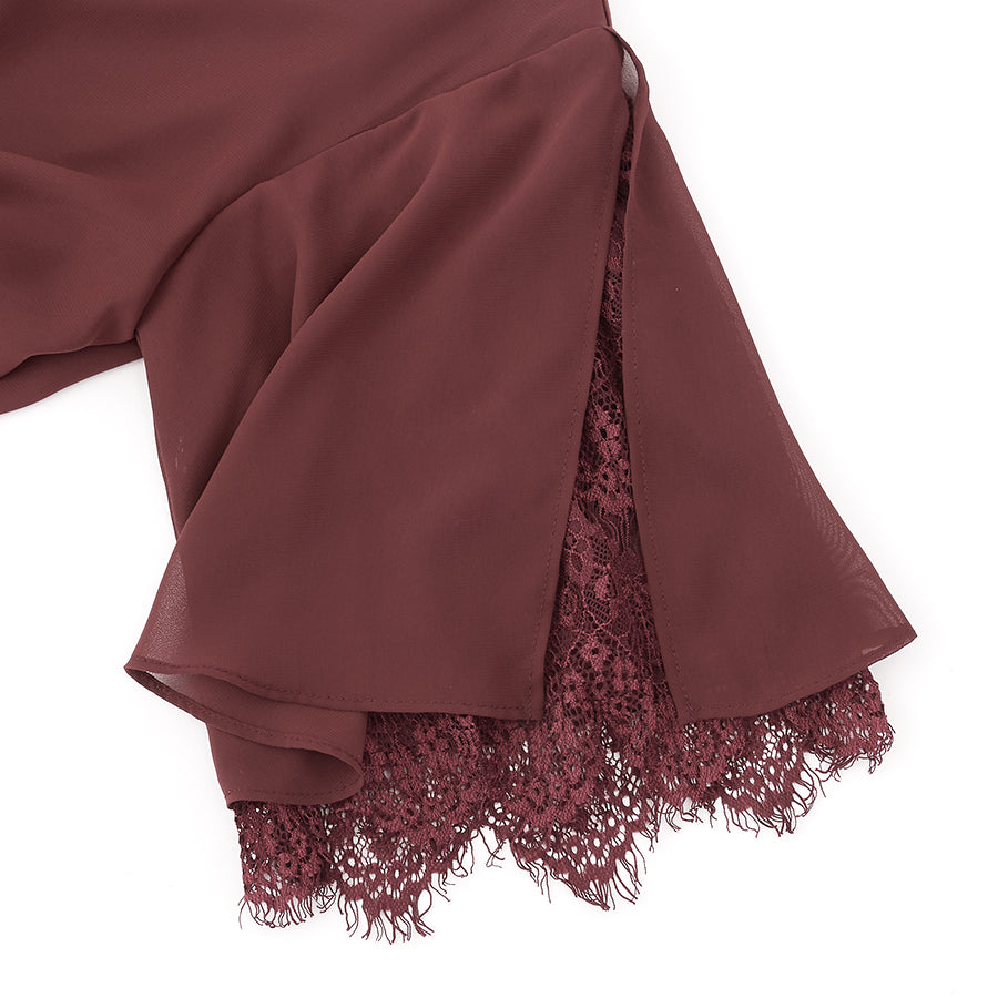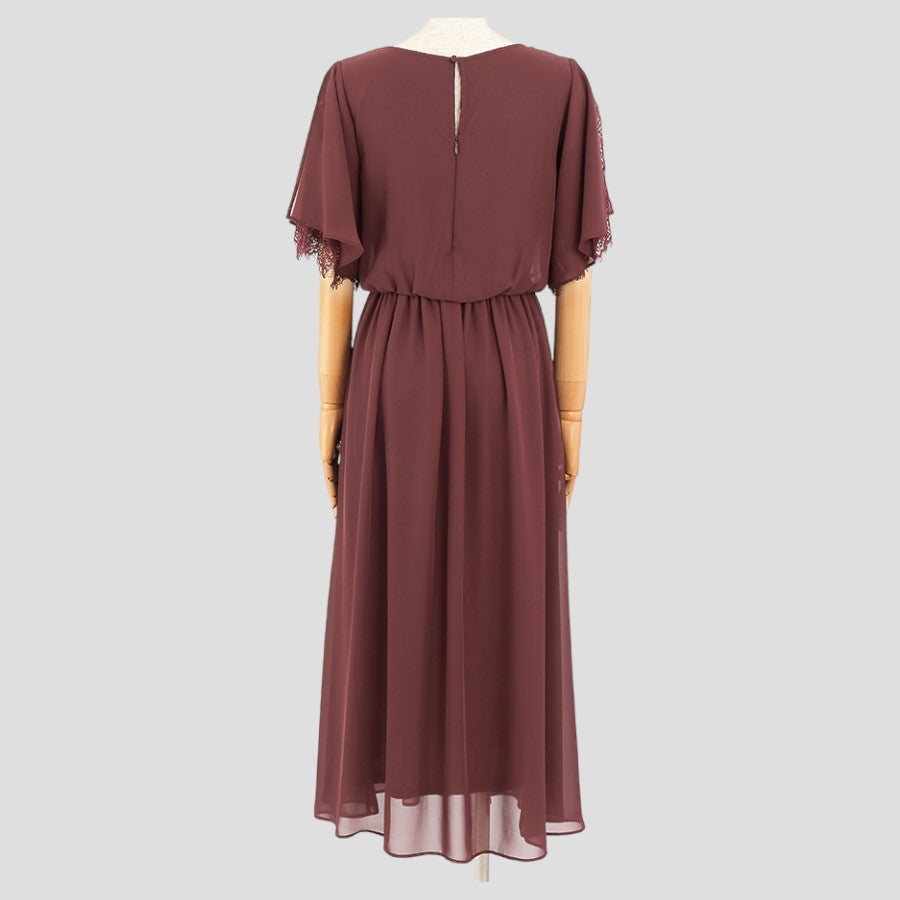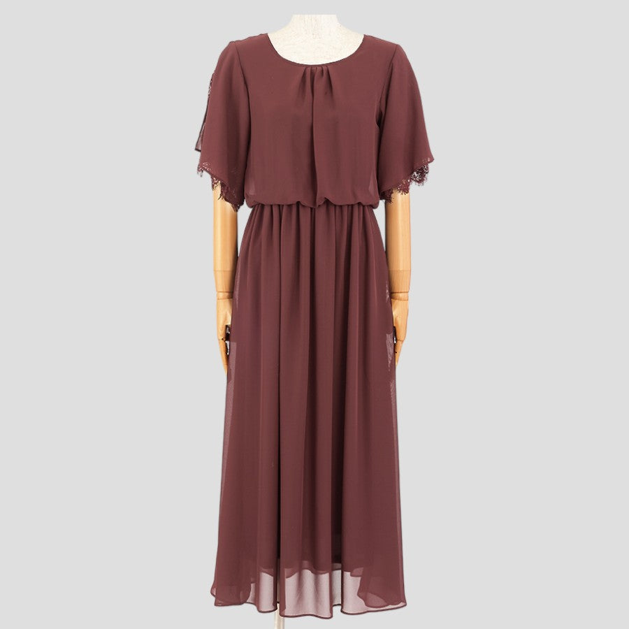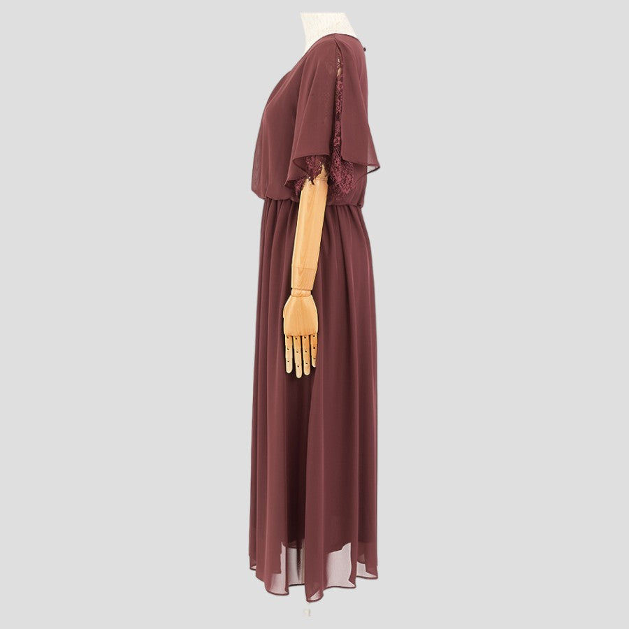 レース使いロングワンピースドレス(Mサイズ/パープル・ワイン・ボルドー/trattoria(トラットリア))USED