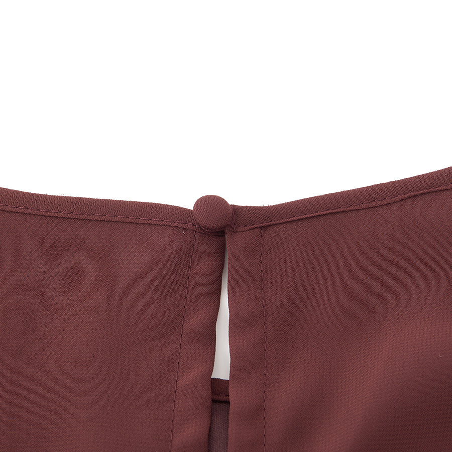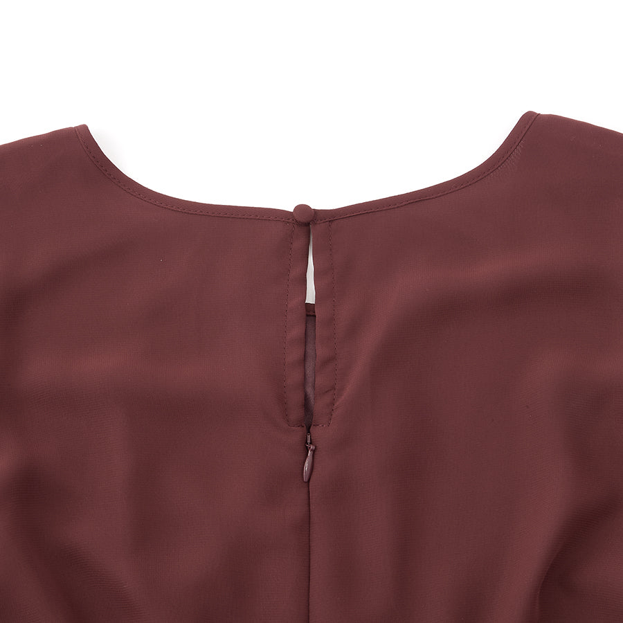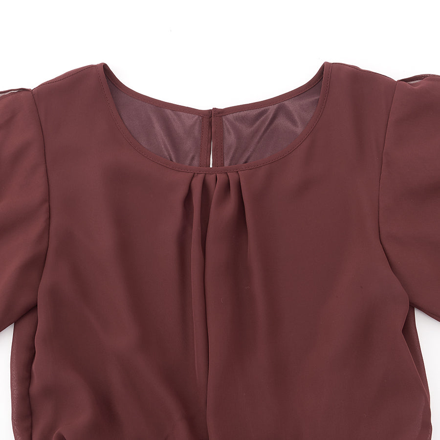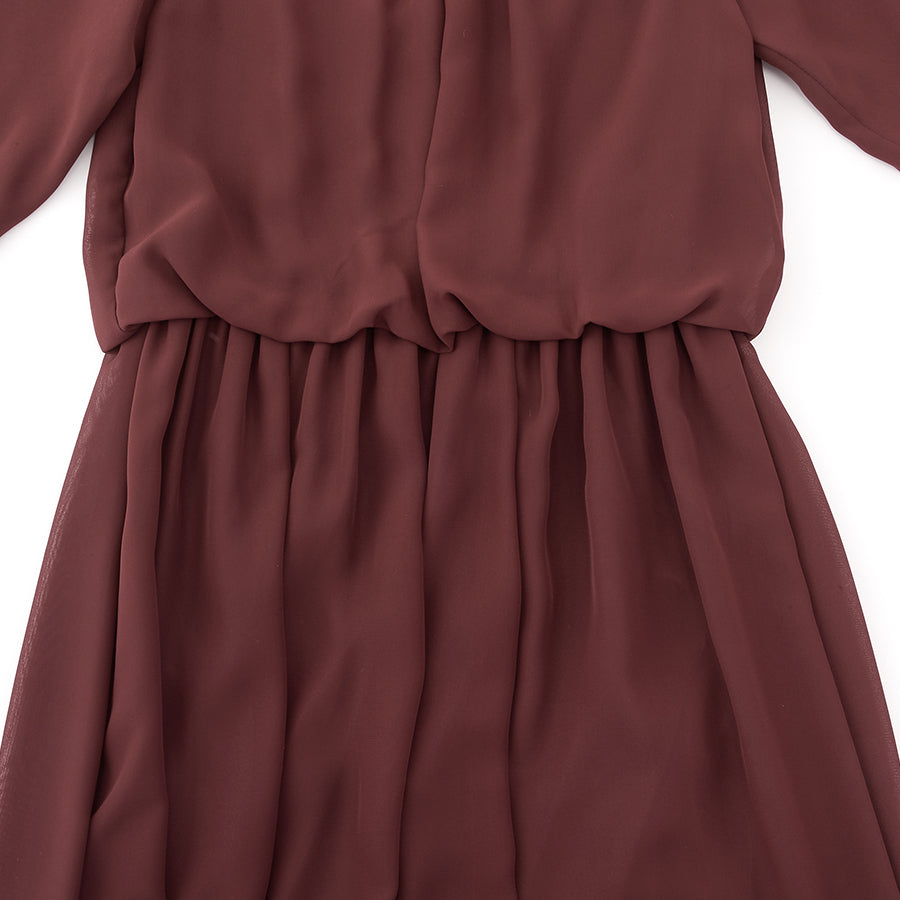シャーリングされたウエストから広がるシフォン素材のスカートが大人可愛い一着です。