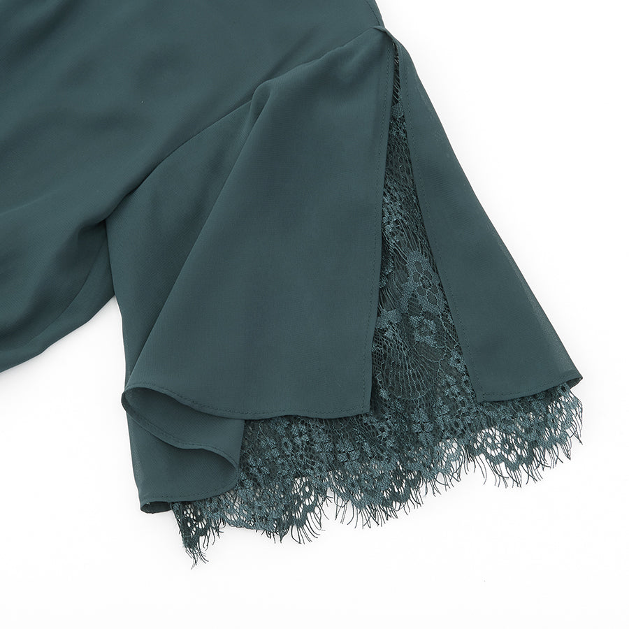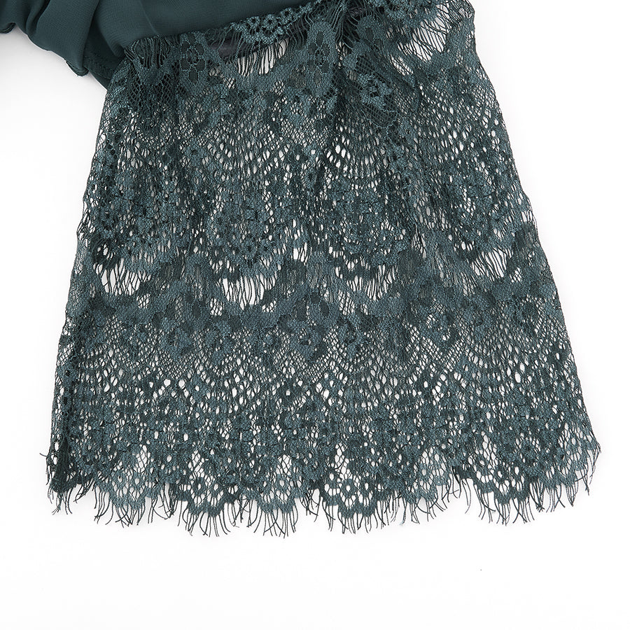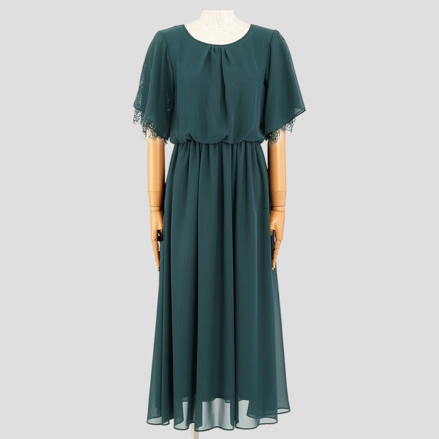レース使いロングワンピースドレス(Lサイズ/グリーン/trattoria(トラットリア))