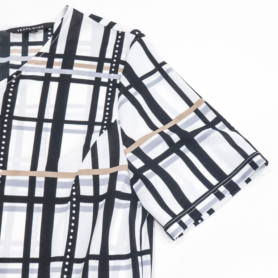 カラーグリットプリントワンピース (Lサイズ/ホワイト/TRANS WORK(トランスワーク))USED