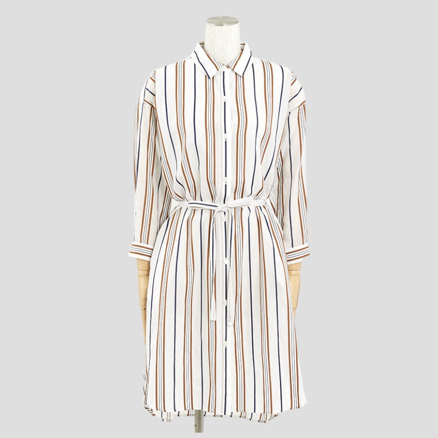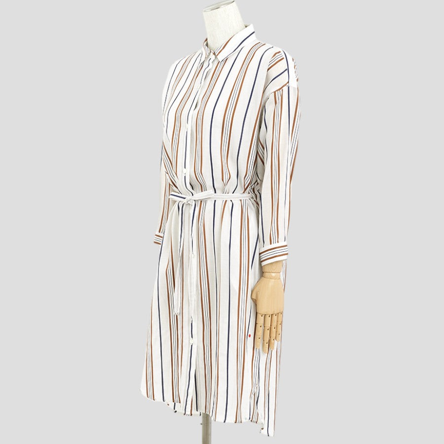 ストライプシャツワンピース(Mサイズ/ホワイト/TRANS WORK(トランスワーク))USED