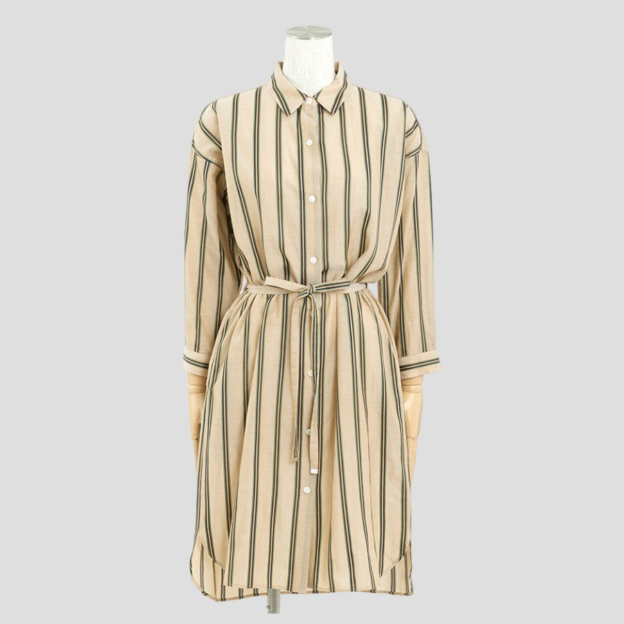 ストライプシャツワンピース(Mサイズ/ベージュ/TRANS WORK(トランスワーク))USED