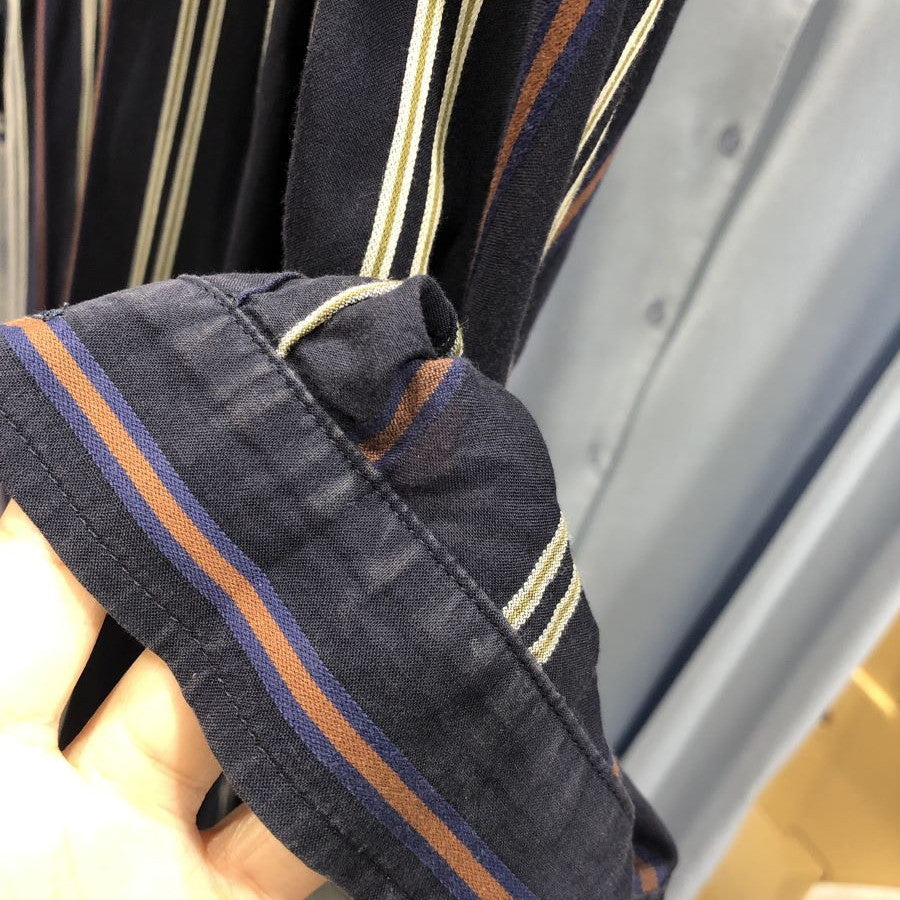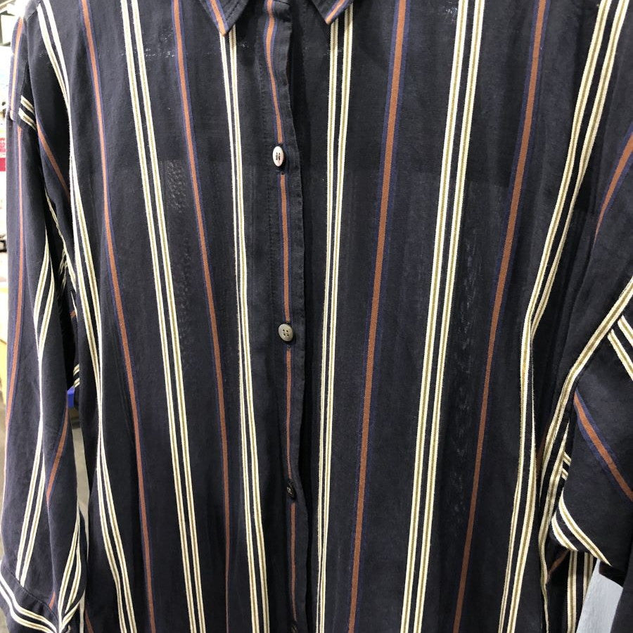 ストライプシャツワンピース(Mサイズ/ネイビー/TRANS WORK(トランスワーク))USED