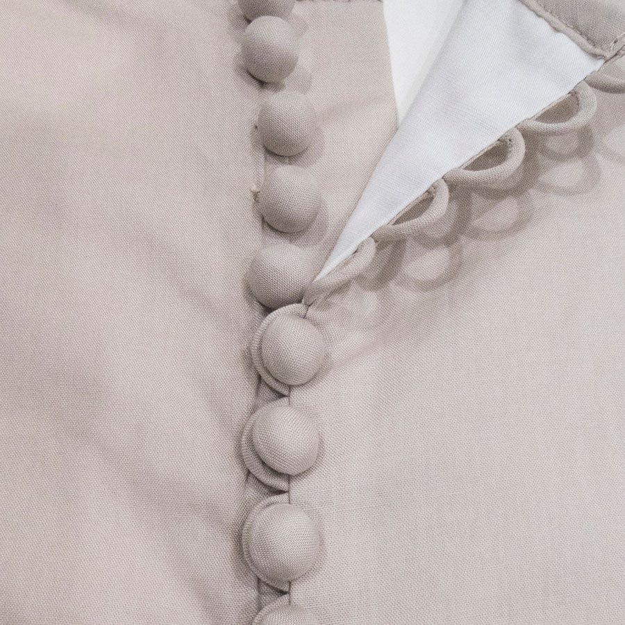 Aラインシルエットですが、やや詰まった首元が子供っぽくなり過ぎない印象にしてくれます。