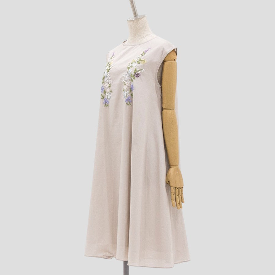 フラワー刺しゅうフレアワンピース(Mサイズ/ベージュ/anatelier(アナトリエ))USED