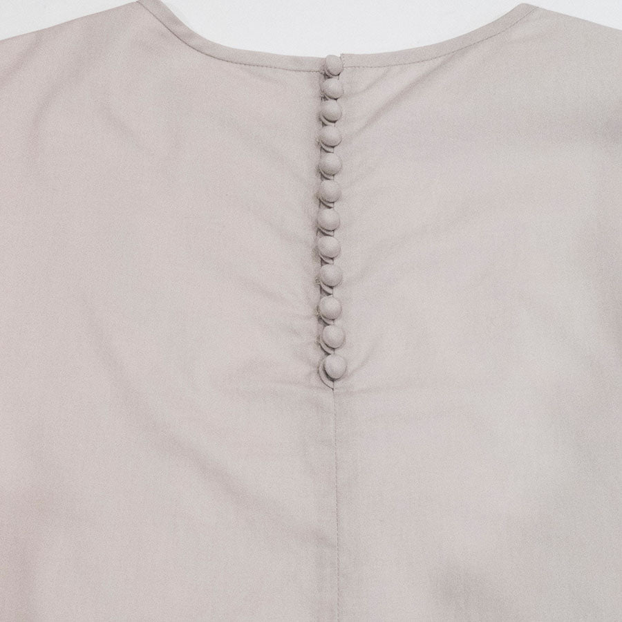 Aラインシルエットですが、やや詰まった首元が子供っぽくなり過ぎない印象にしてくれます。