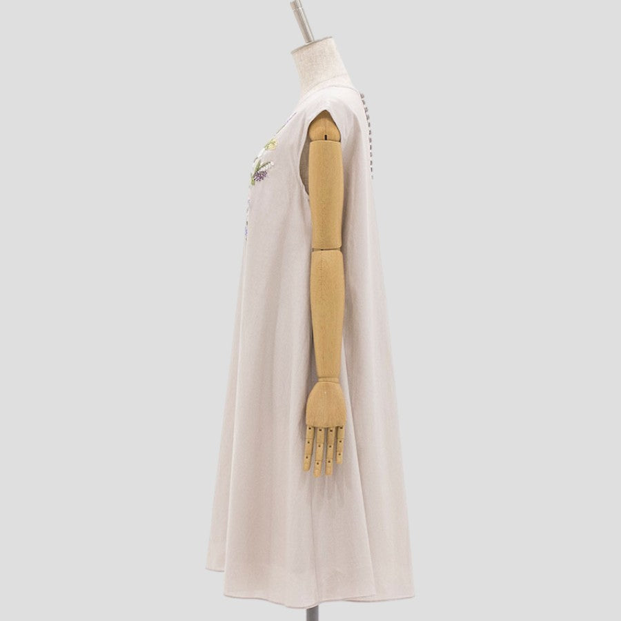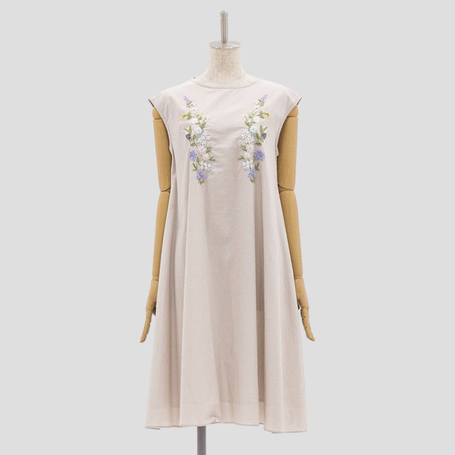 フラワー刺しゅうフレアワンピース(Mサイズ/ベージュ/anatelier(アナトリエ))USED