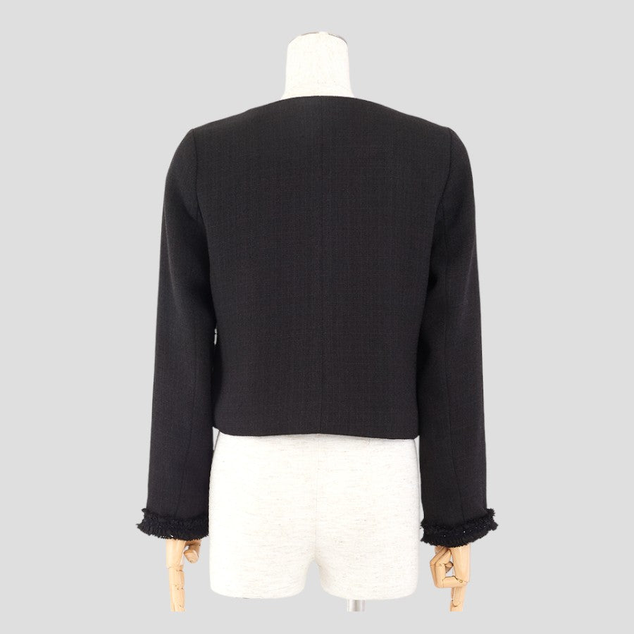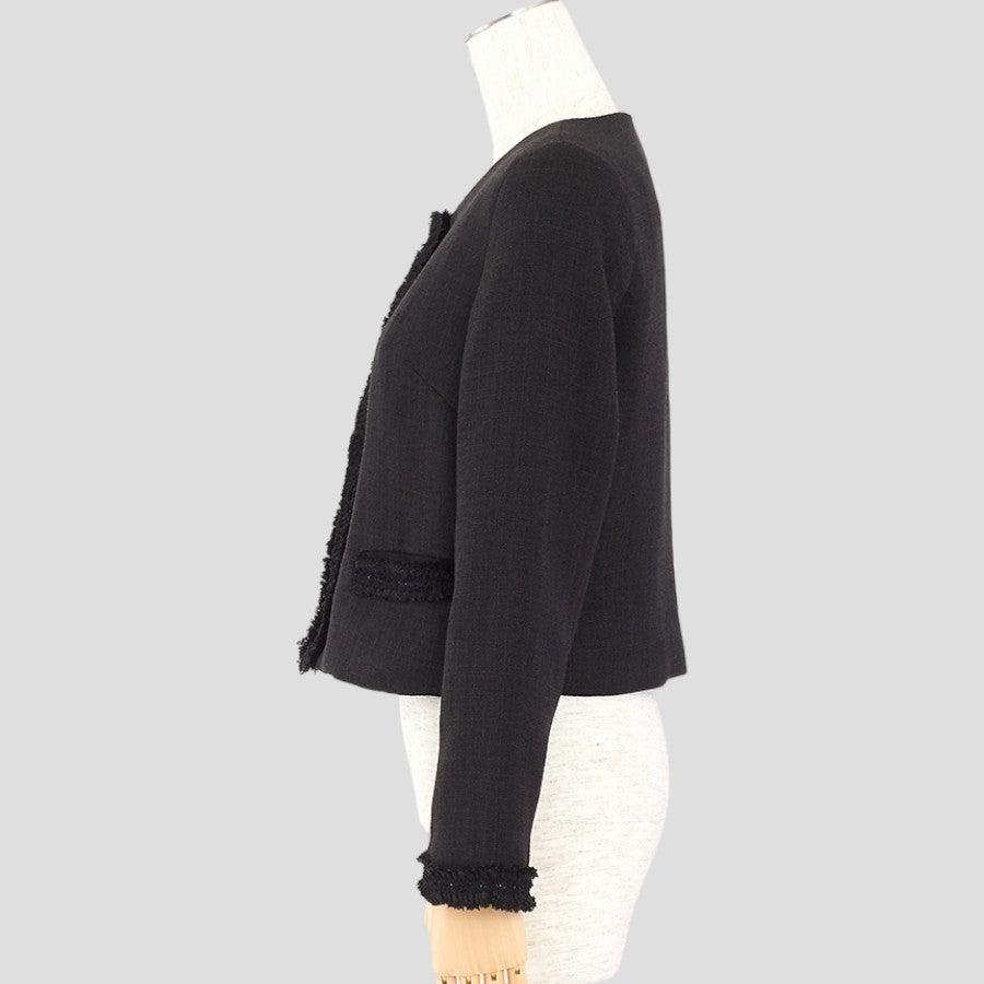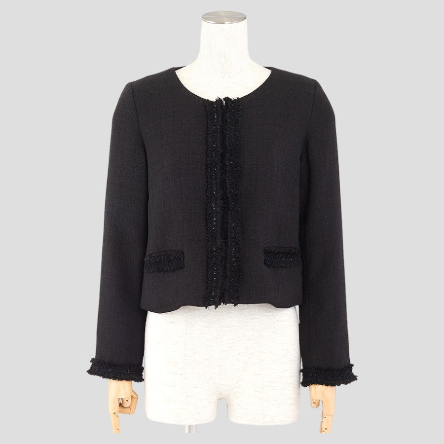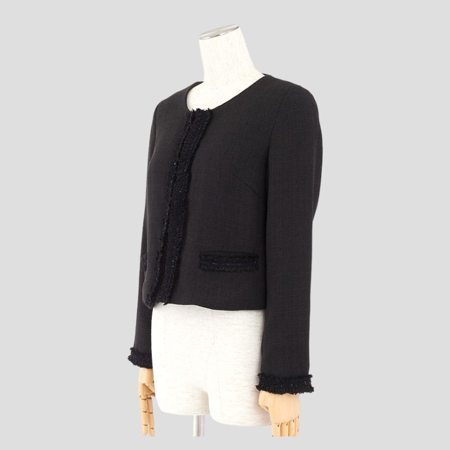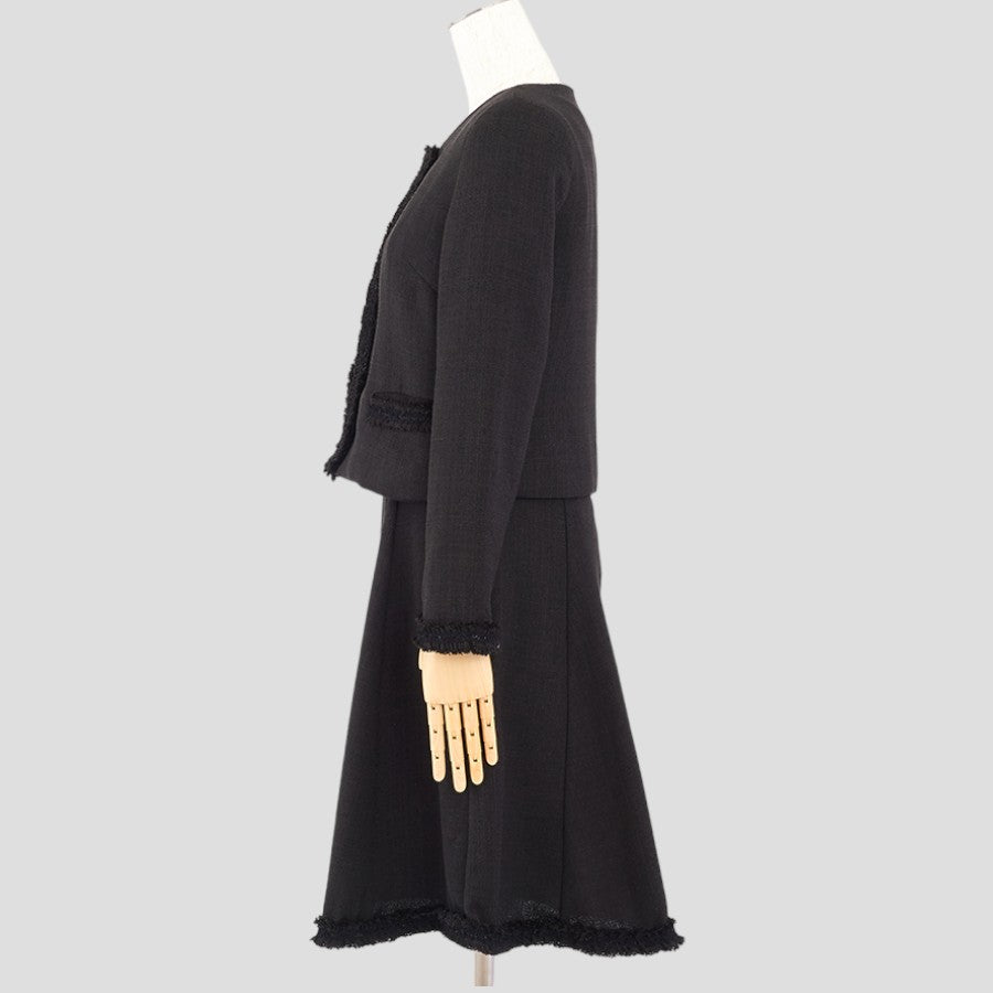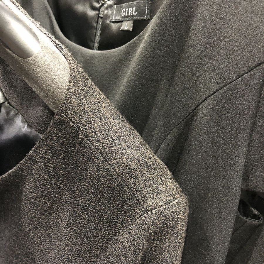 ノーカラージャケット&フレアワンピースフリンジデザインセットアップスーツ(Lサイズ/ブラック/GIRL(ガール))USED