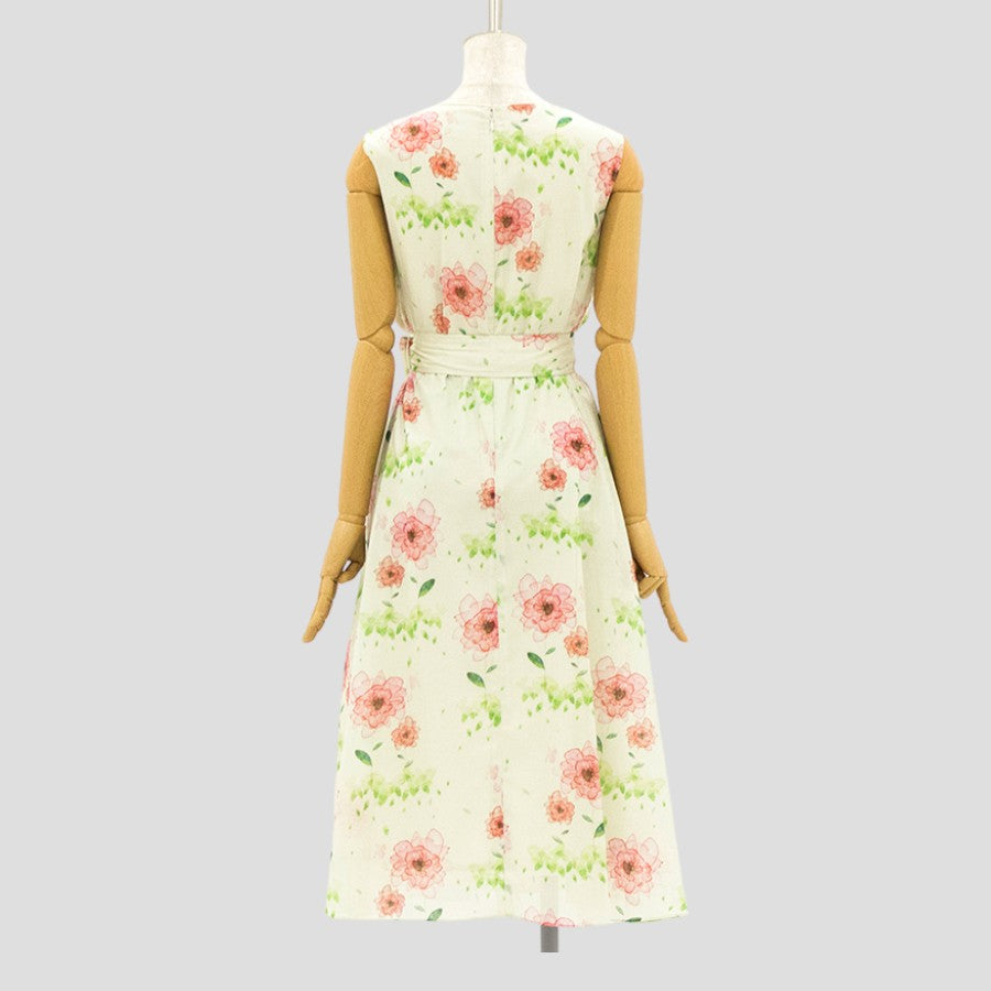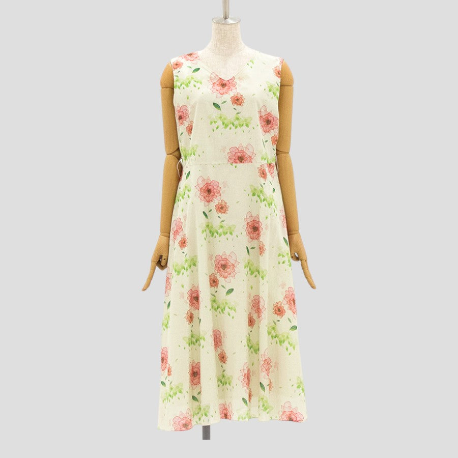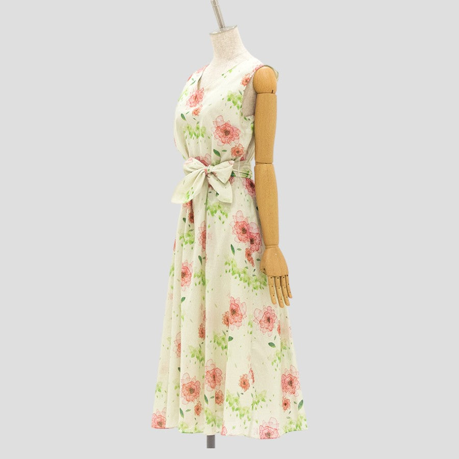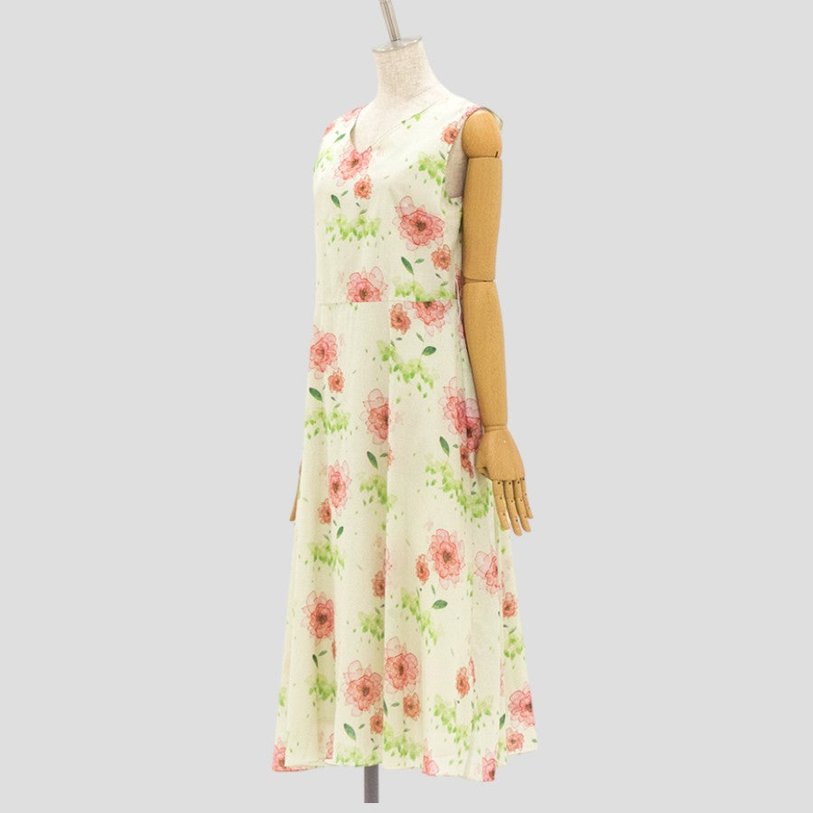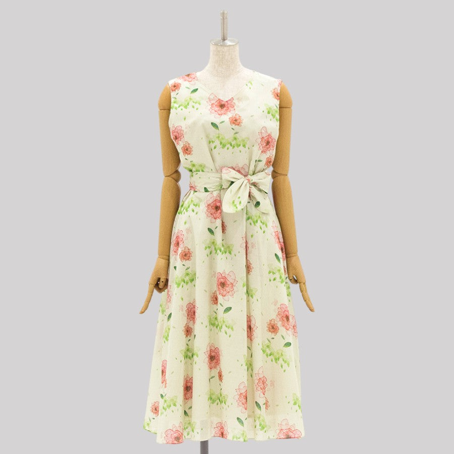 水彩風の花柄プリントが大人可愛いワンピース。