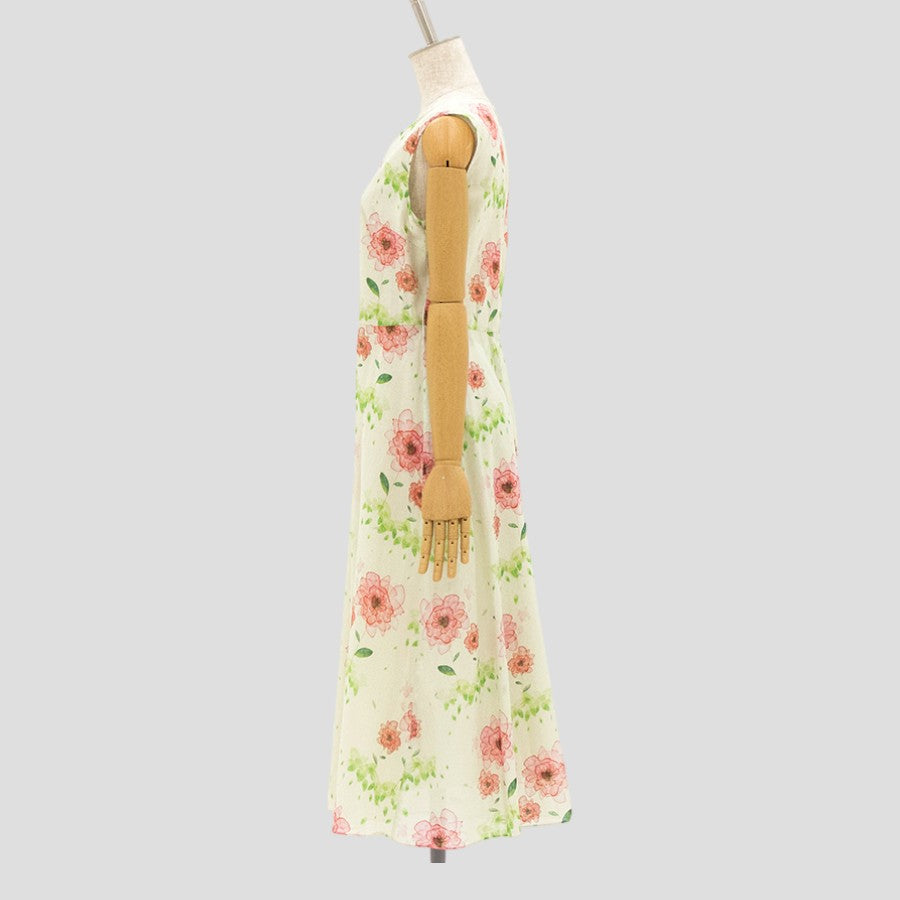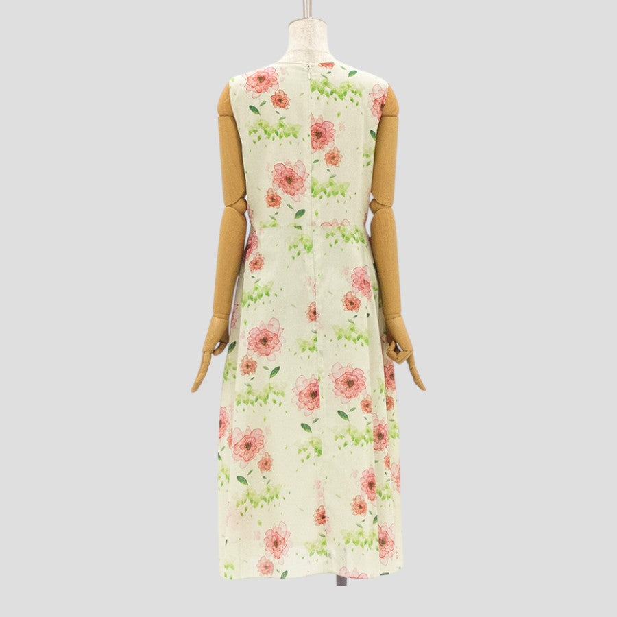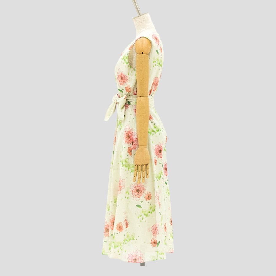 水彩 花柄 ワンピース(Sサイズ/グリーン/ENRICO DOMANI(エンリコドマーニ))USED