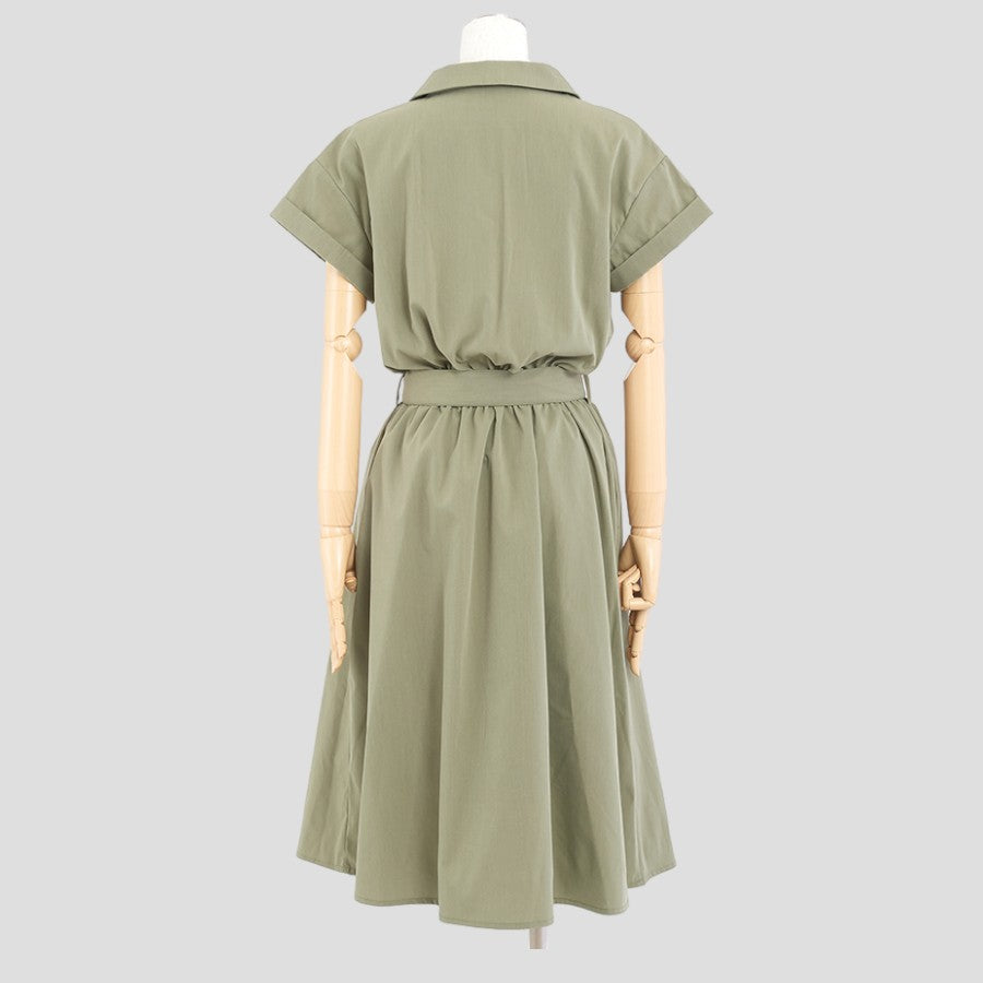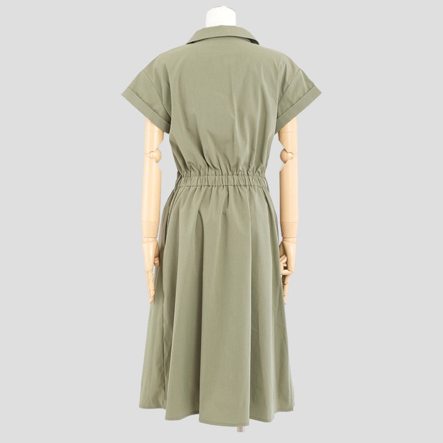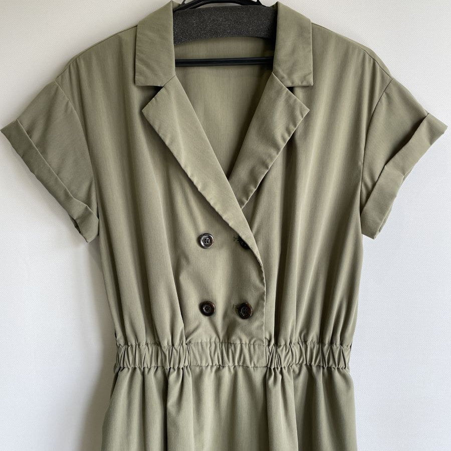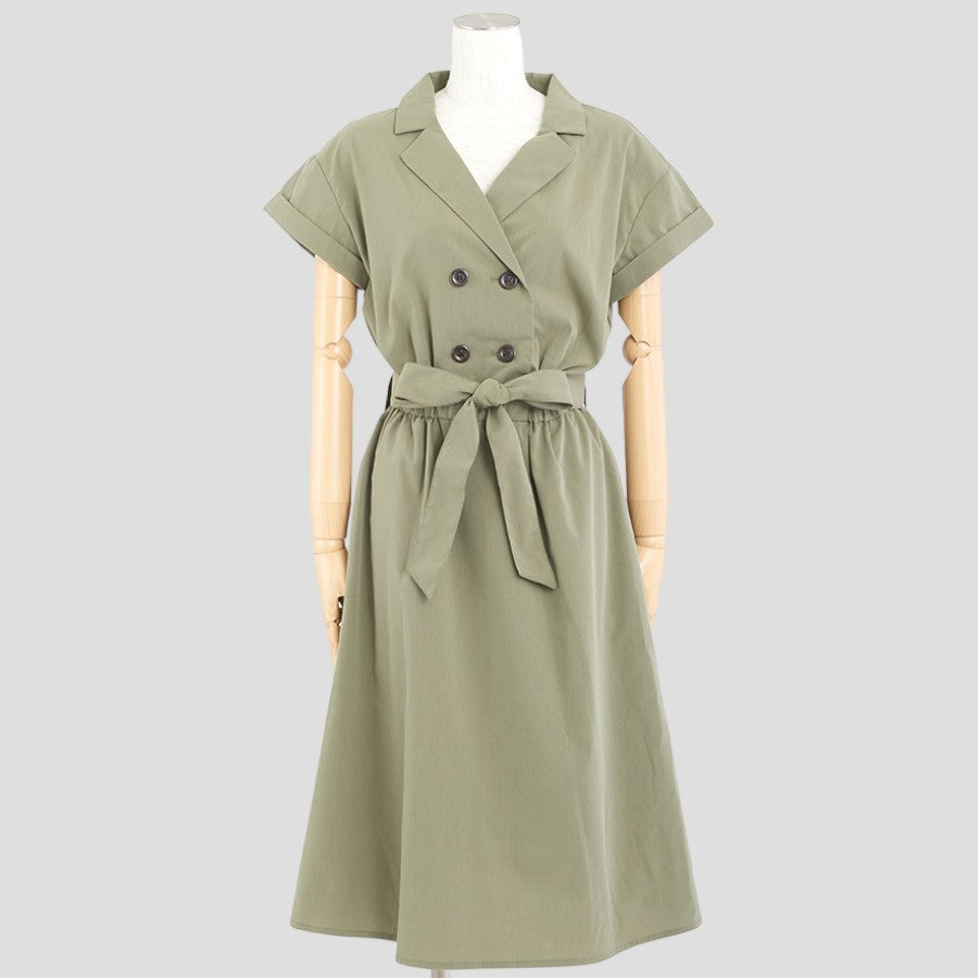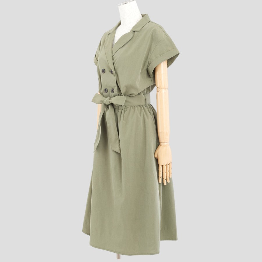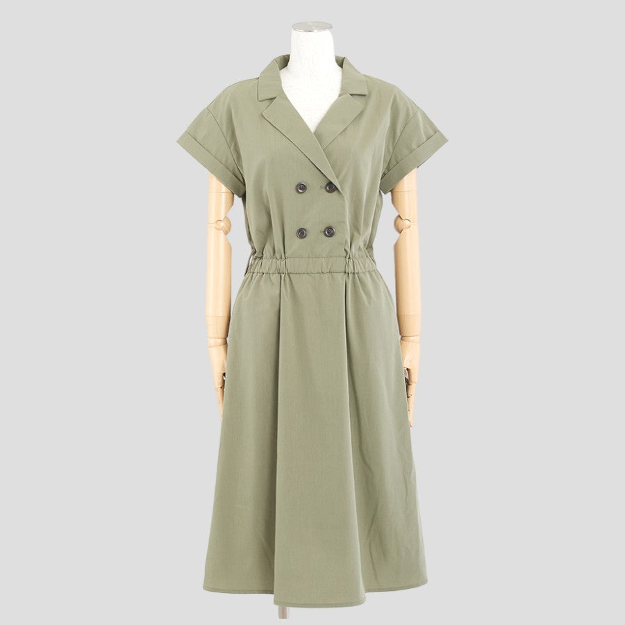 開襟のダブルボタンできちんと感があるワンピース。
