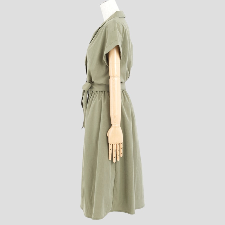 シャツ風ワンピース(Lサイズ/カーキ/FABIA(ファビア))USED