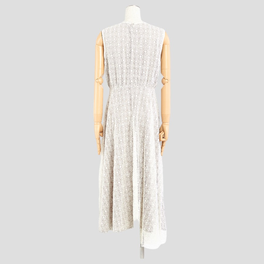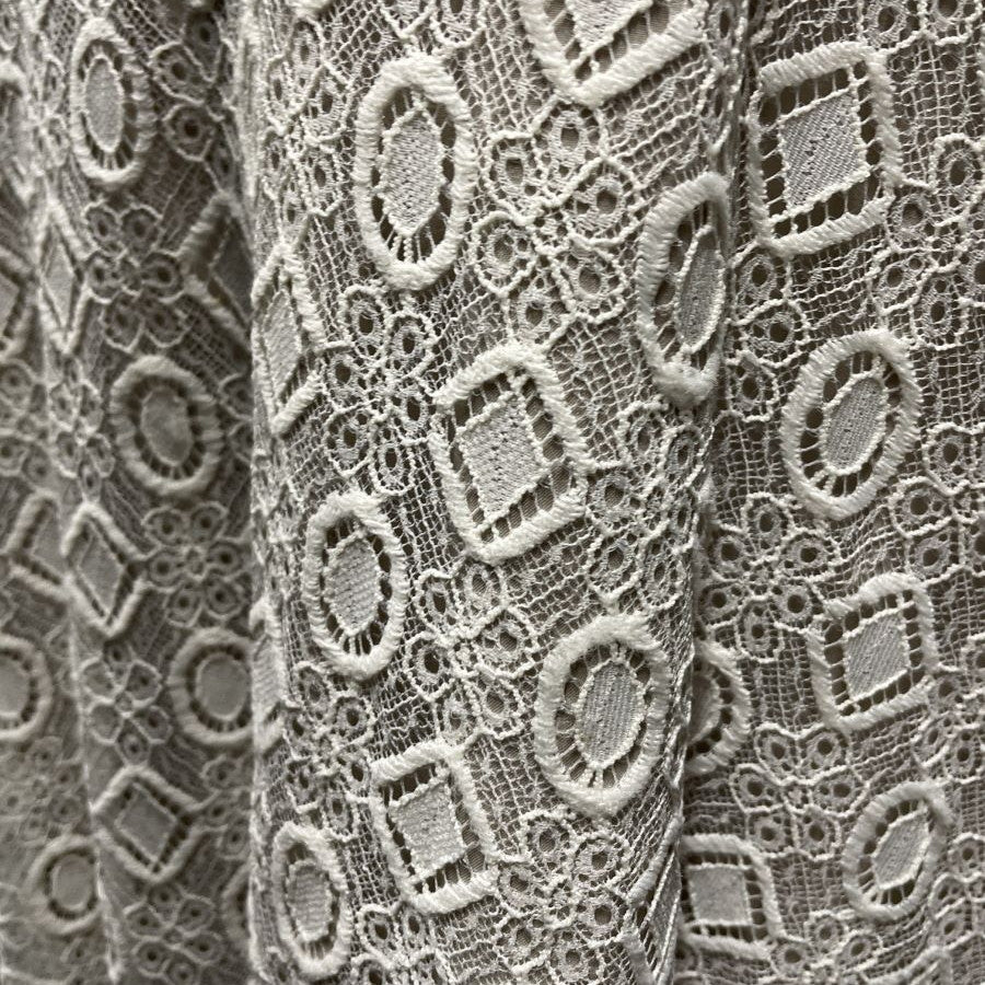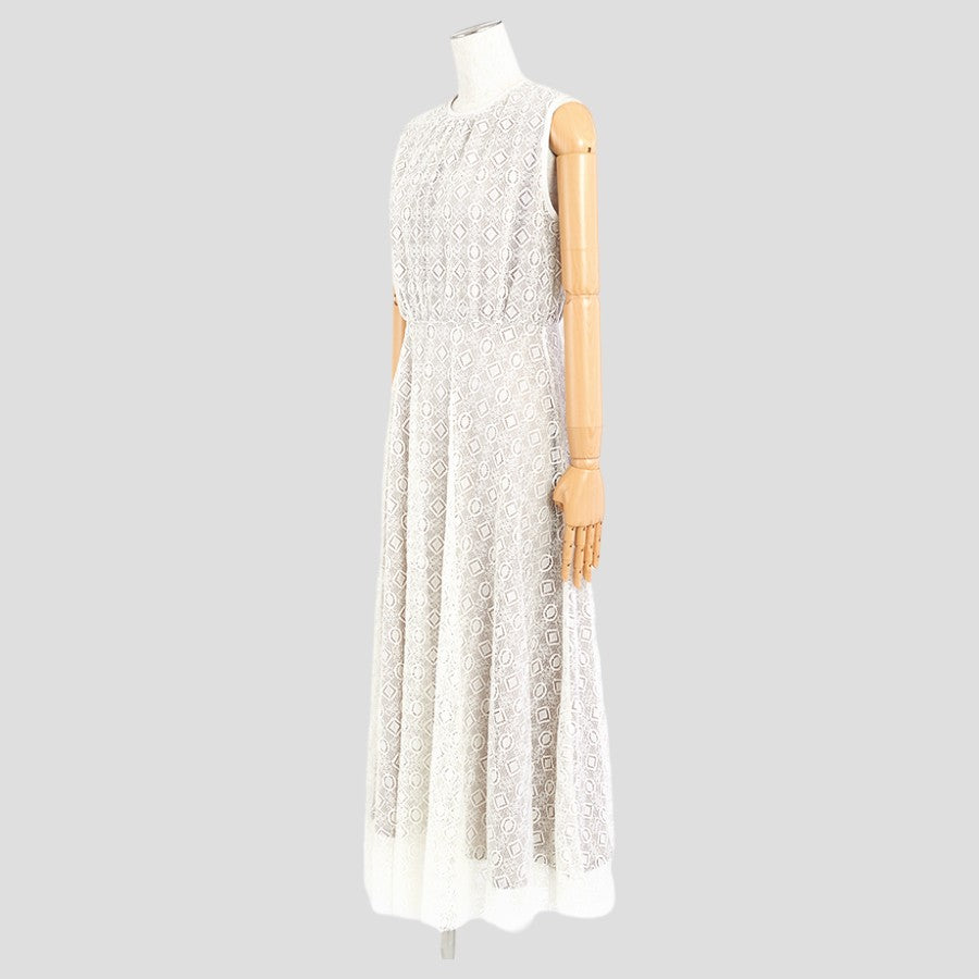 清潔感のある白色のレースと落ち着いたベージュの裏地で、大人可愛い一着です。