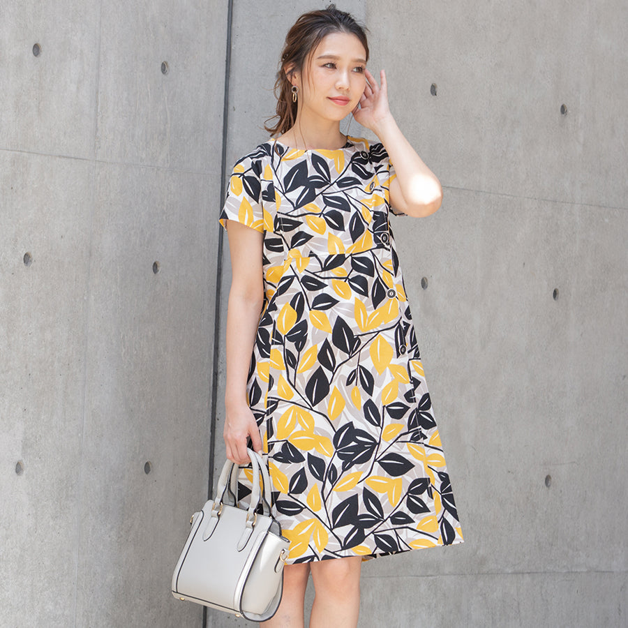 リーフ模様が大人可愛いワンピース。