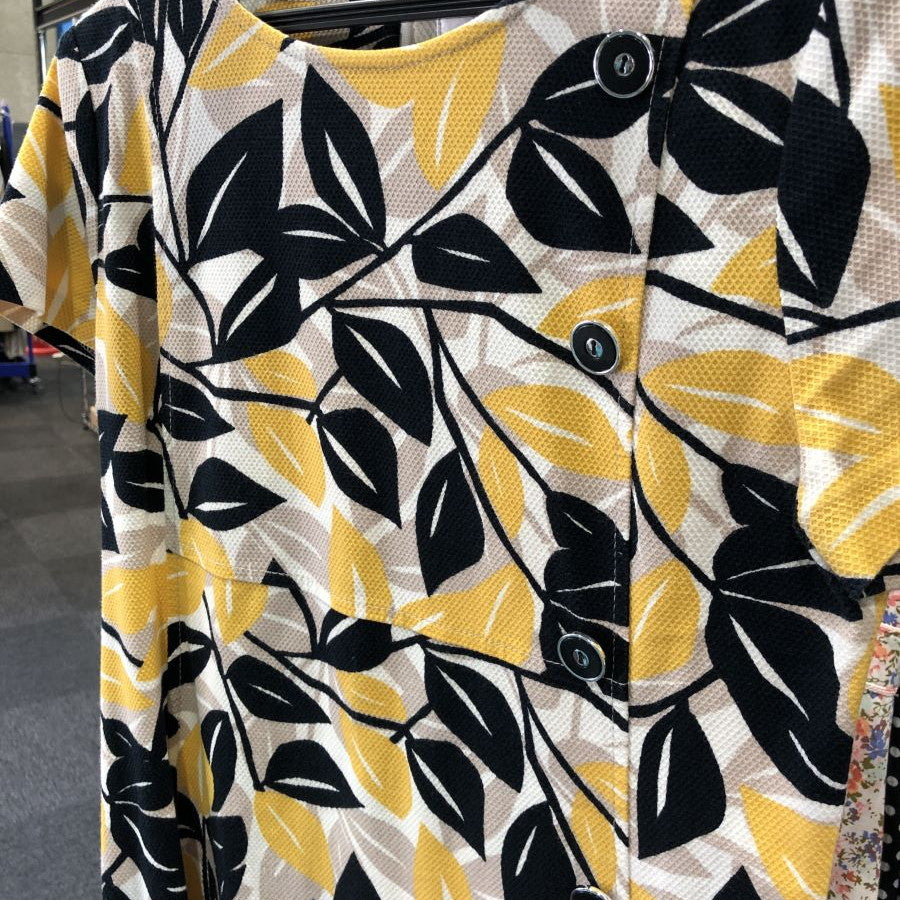 ストレッチピケ・ボタンワンピース(Mサイズ/イエロー/DoCLASSE(ドゥクラッセ))USED