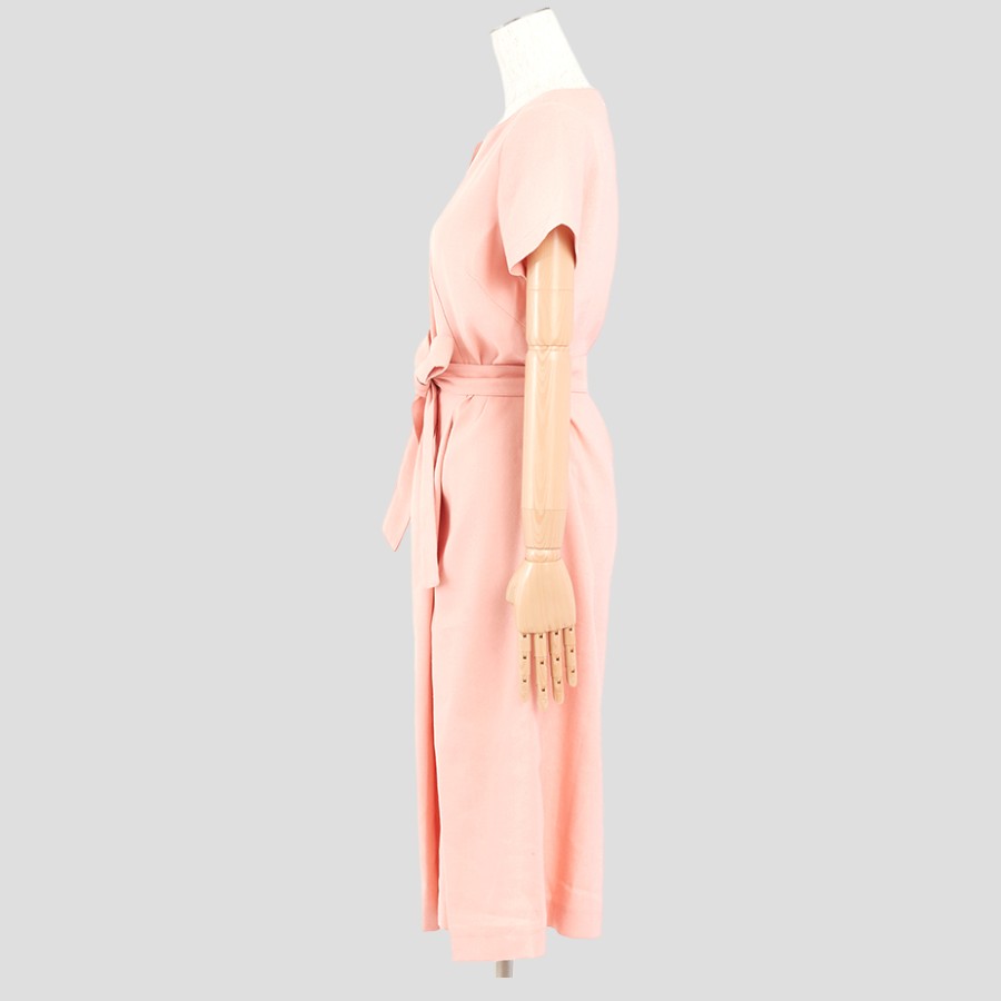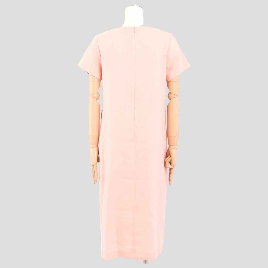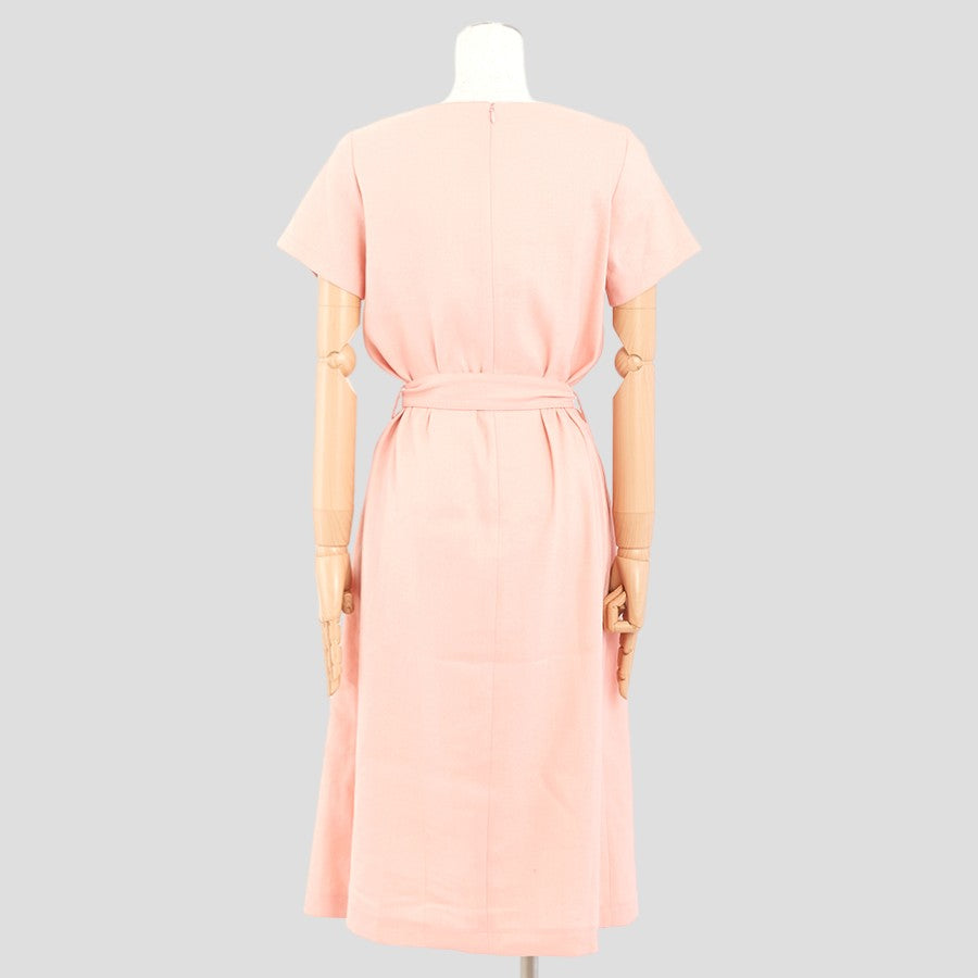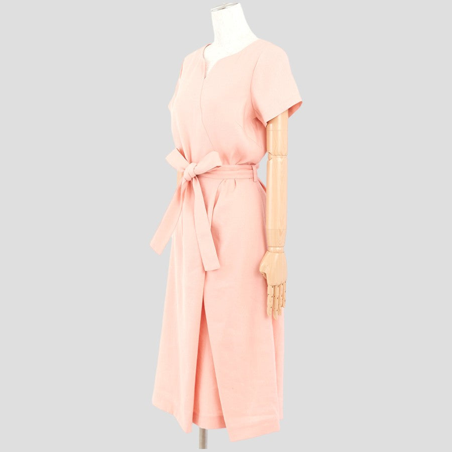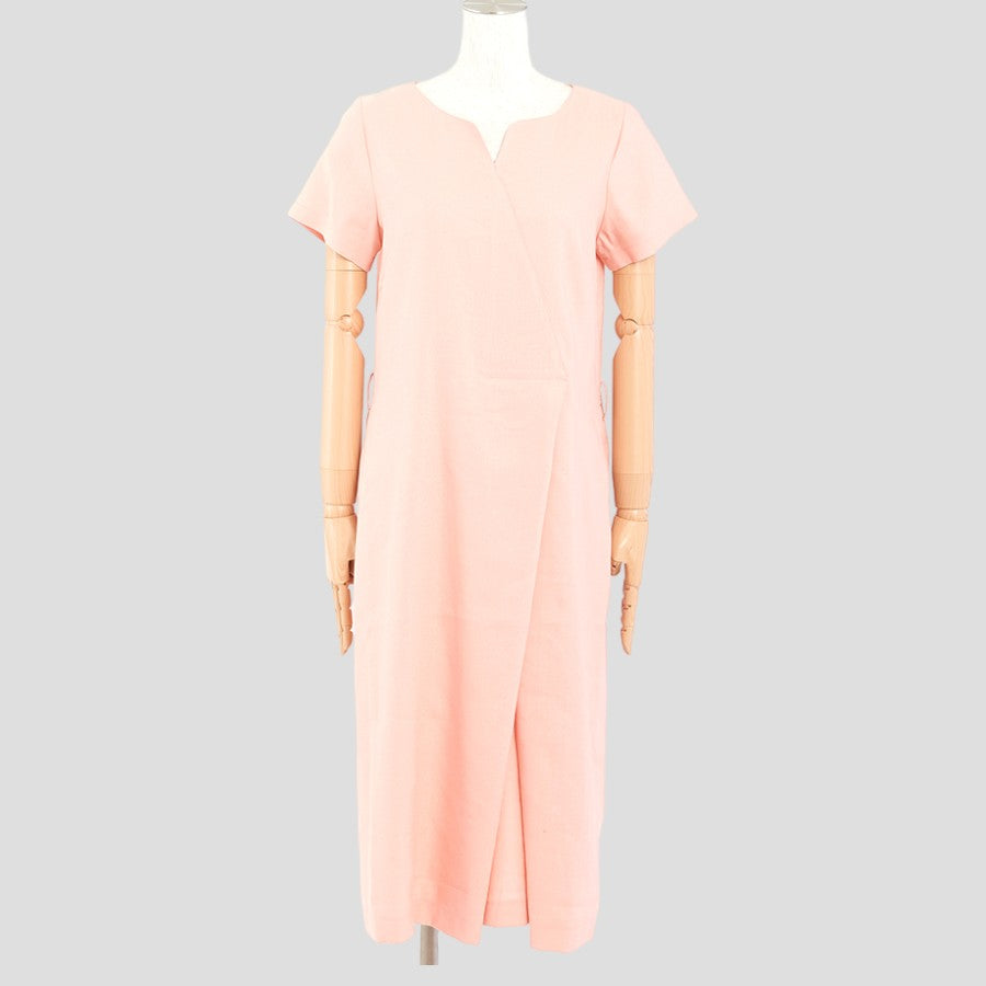 ストレッチリネン・カッティングワンピース(Mサイズ/ピンク/DoCLASSE(ドゥクラッセ))USED