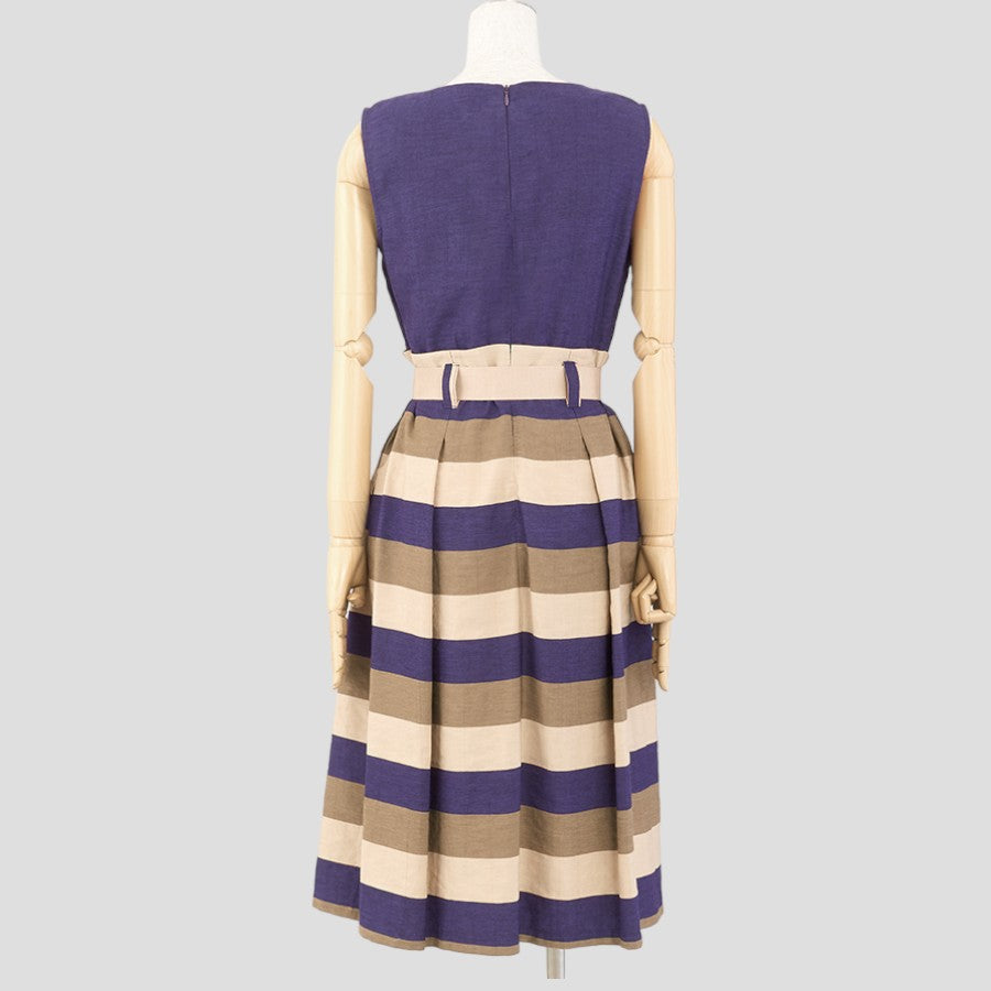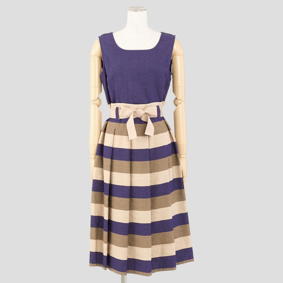 ボーダー切替ワンピース(Mサイズ/パープル・ワイン・ボルドー/IL VENTO & LA SETA(イル ヴェント アンド ラ セータ))USED