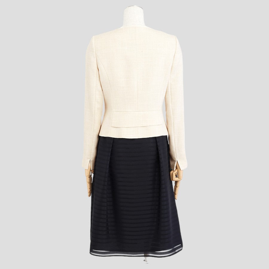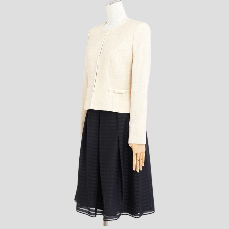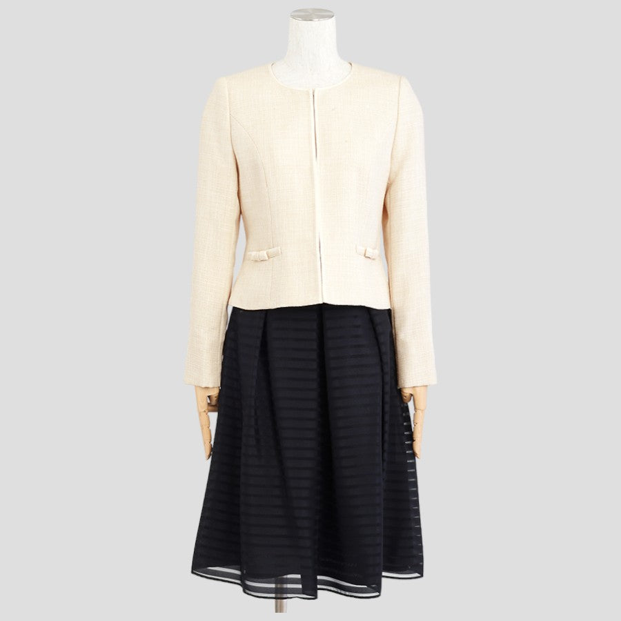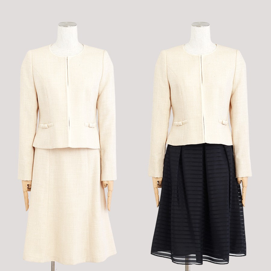 サマーツイードのジャケットとスカート、黒のフレアスカートの3点セットです。