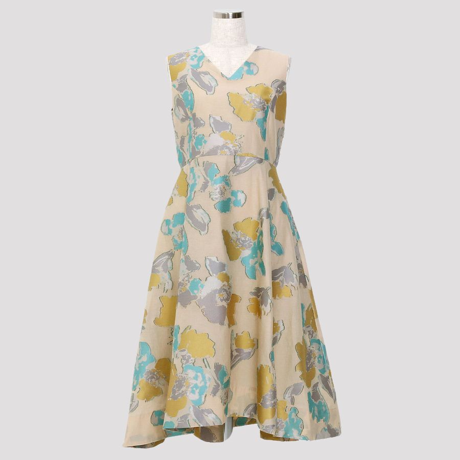 ジャガード花柄ワンピース(Mサイズ/ベージュ/組曲(クミキョク))USED