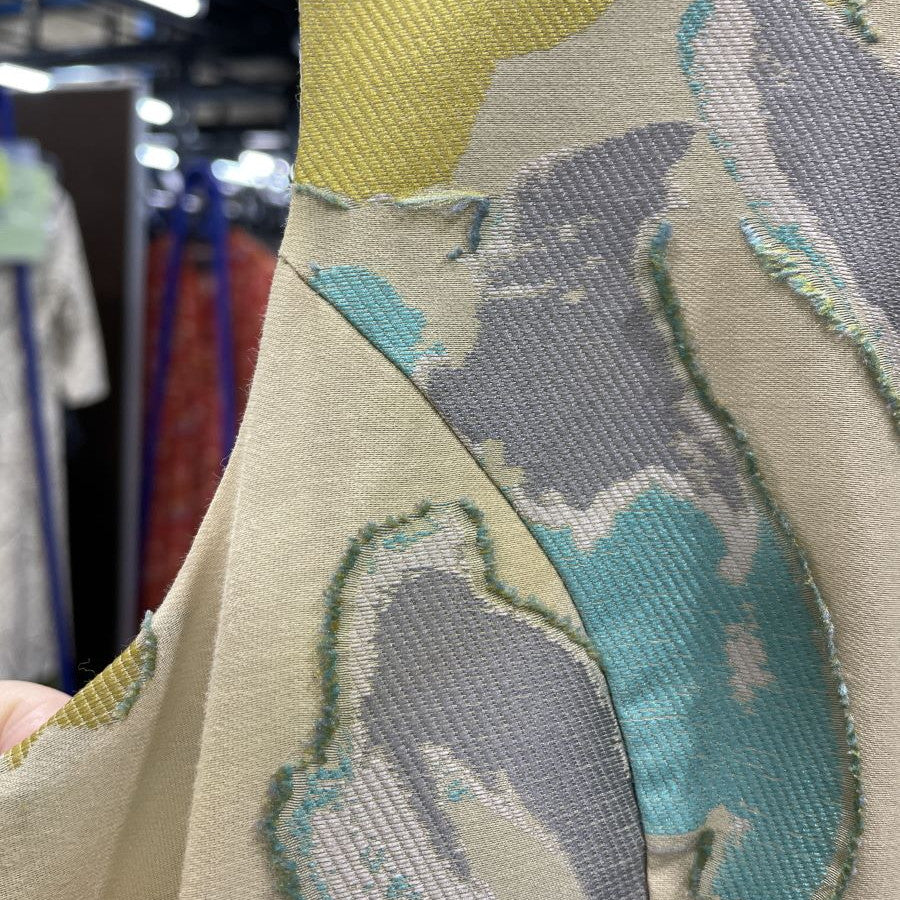 少し張りのある素材かつ後裾の長いフレアで華やかなシルエットになっております。