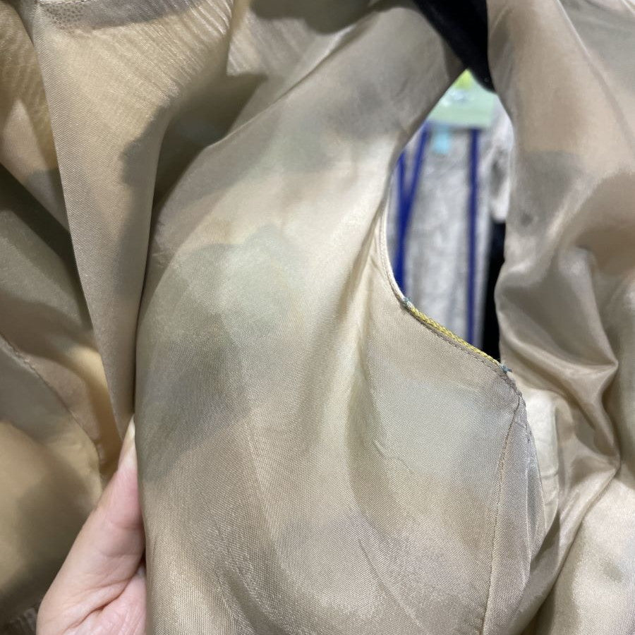 襟刳りと後ろ裾にクリーニングで取れなかったシワがあります。(画像参照)