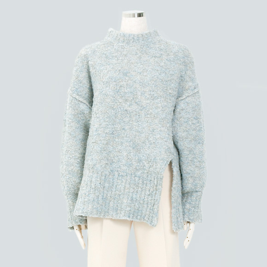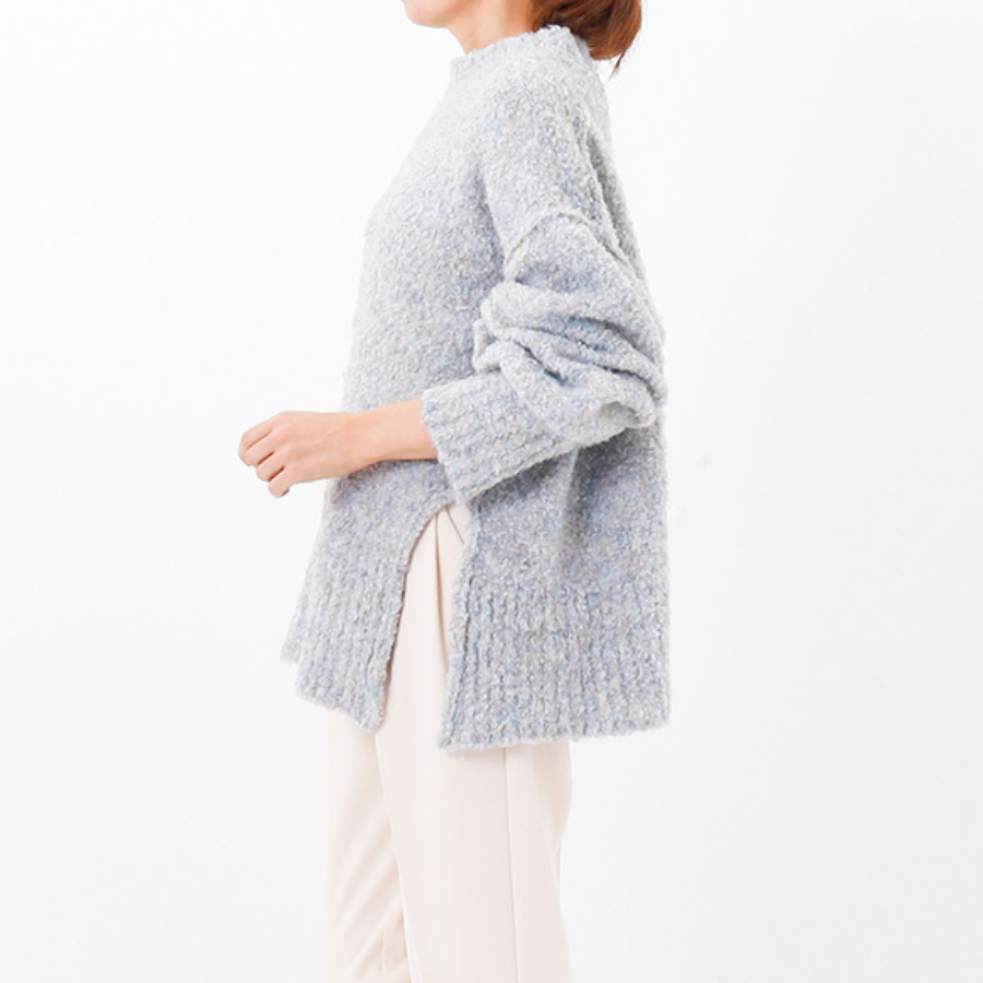 ボリューム袖のサイドスリットニット。